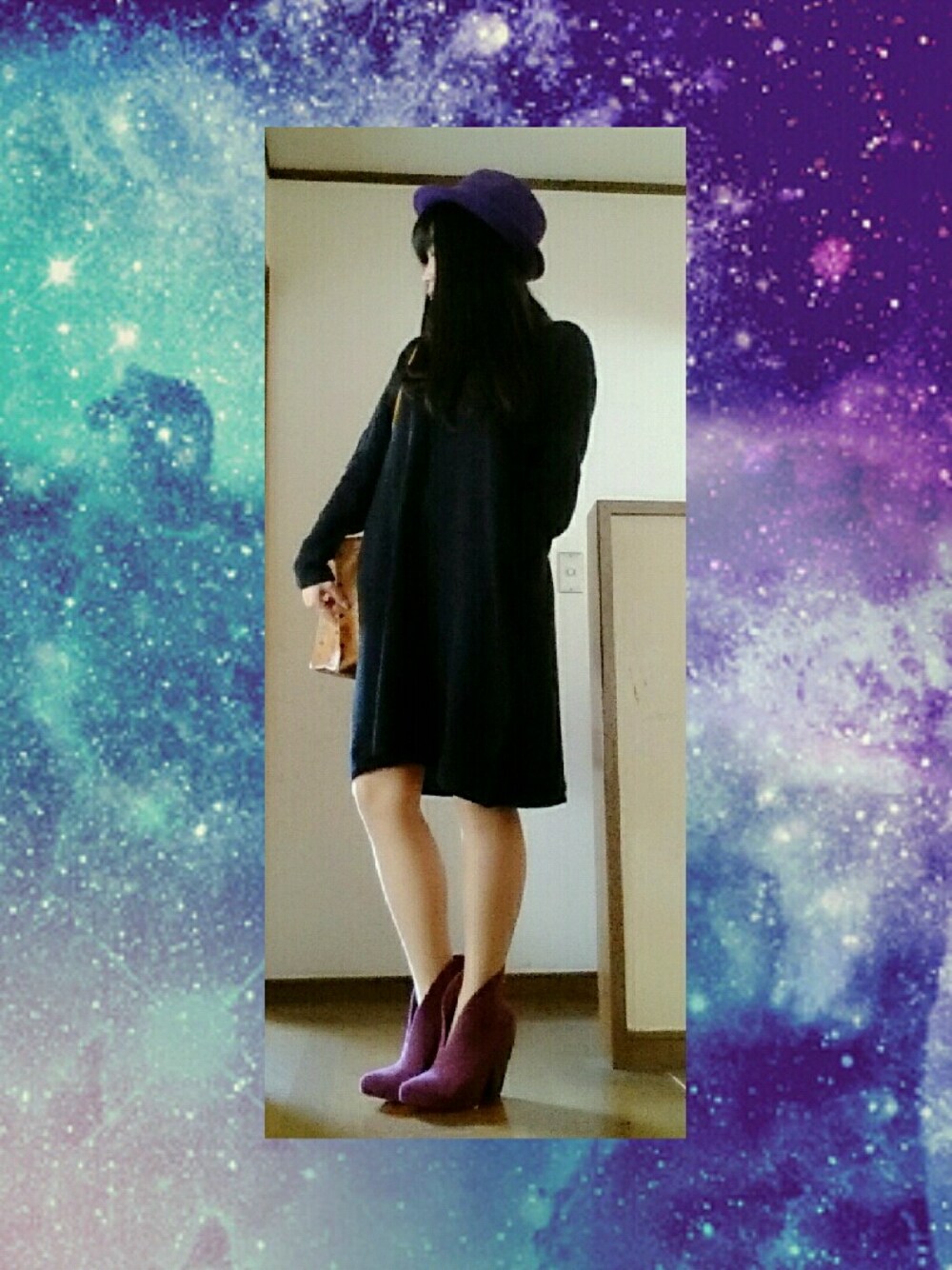 20151023 ニットワンピースとブーティは アウトレットでお安く入手 何年も前から放置だった紫色のハットと たまたまマッチする気がしたので にしてもVivienneかわいい♡