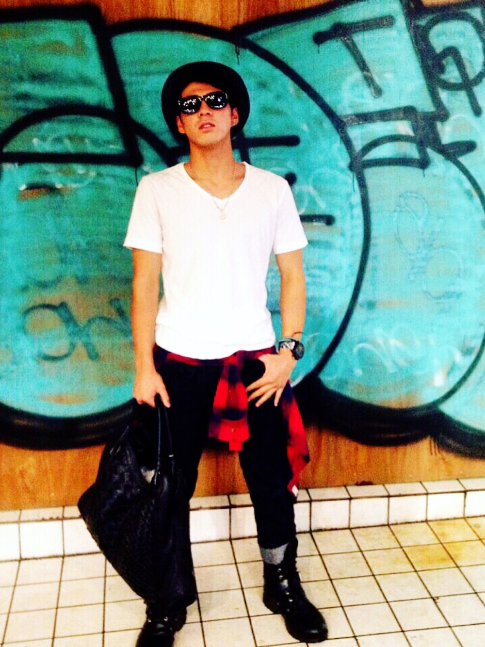 原宿に行ってきました。 ハットが被りたくて下をゴツくしてみ ました。 シンプルな服装に赤をとりいれました。