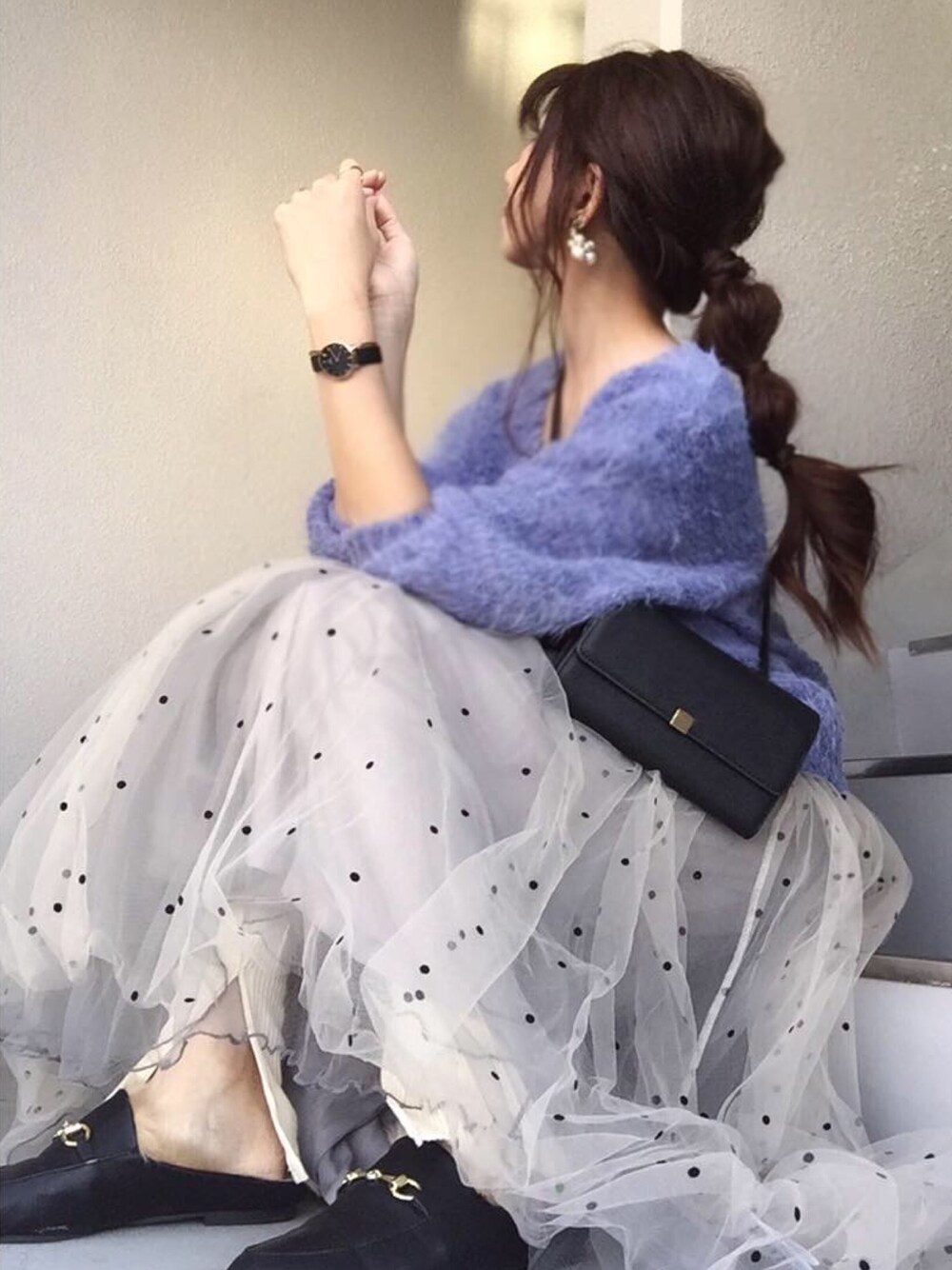 サックスブルーのニットがふわふわで可愛いっ♥️ Instagram:chery0131