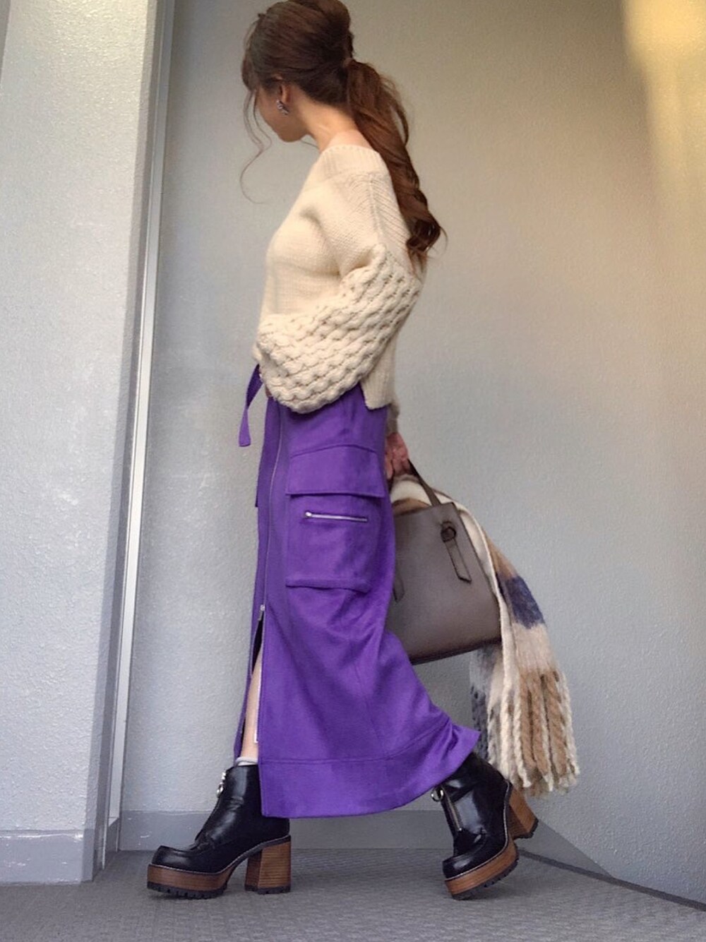 cheryのニット/セーター「袖柄編みプルオーバー」を使ったコーディネート