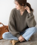 cheryのニット/セーター「キーネックケーブルニット」を使ったコーディネート