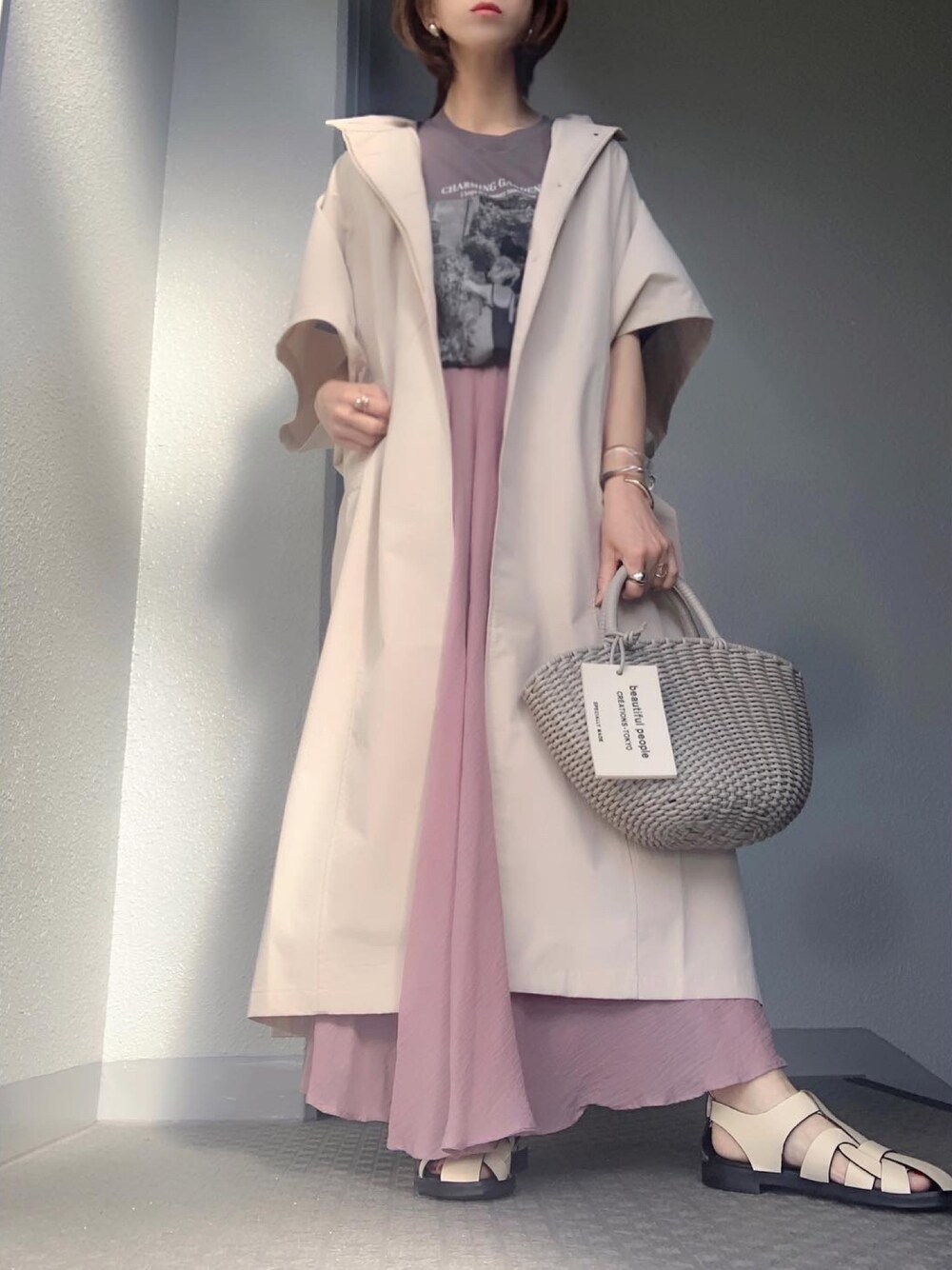 cheryのトレンチコート「シャークスキンロングスプリングオーバーサイズトレンチポンチョ」を使ったコーディネート