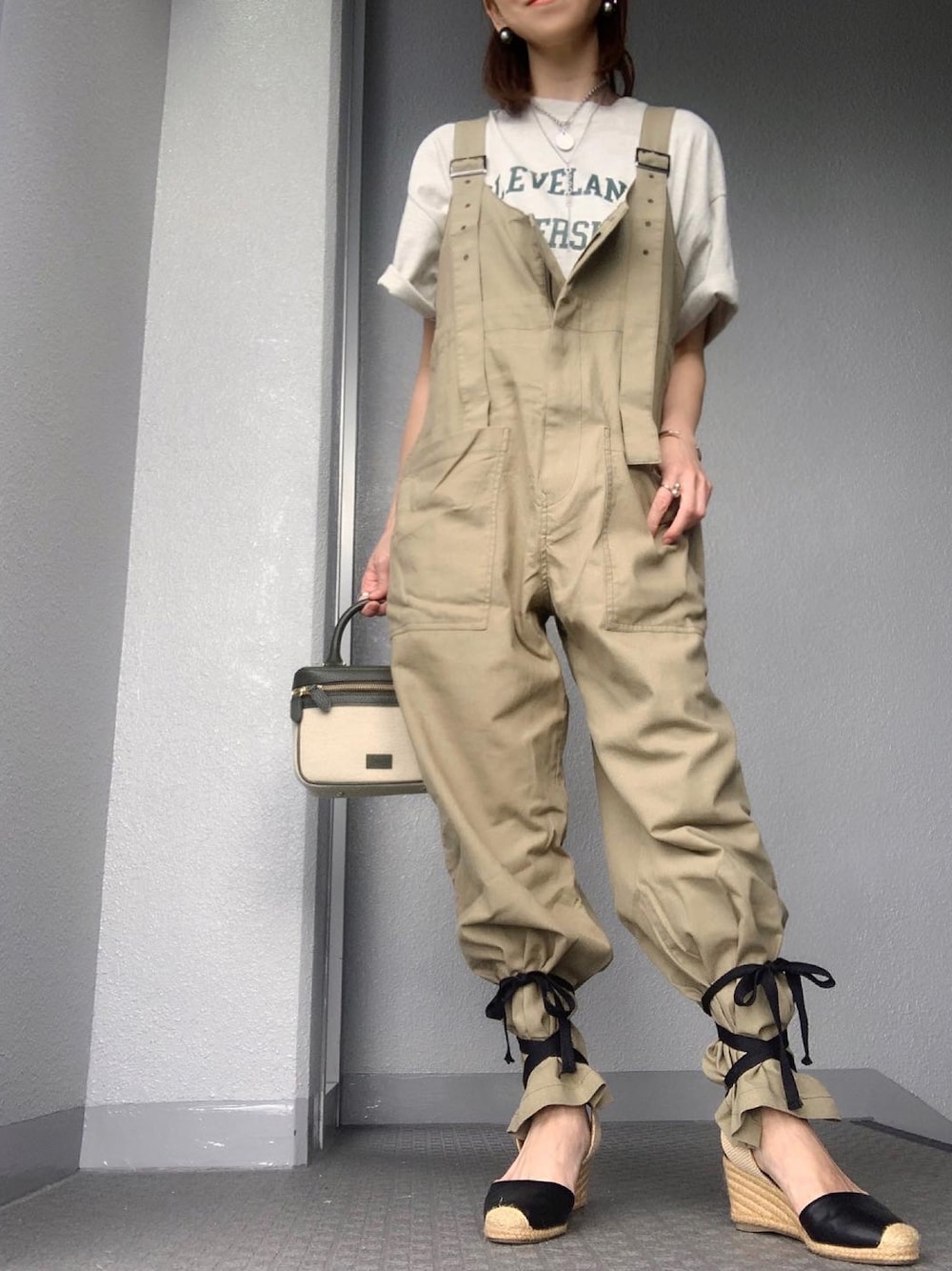 @birthdayroom_official さんのカレッジロゴT‧✧̣̥̇‧ サロペットからチラ見せも可愛いいな--♥ᵕ̈* ロゴTって合わせやすいし使える‧✧̣̥̇‧何枚あってもいいやつ🤍!! ZOZOで1000円クーポン出てますよ❥ ❥ ❥ Instagram:chery0131
