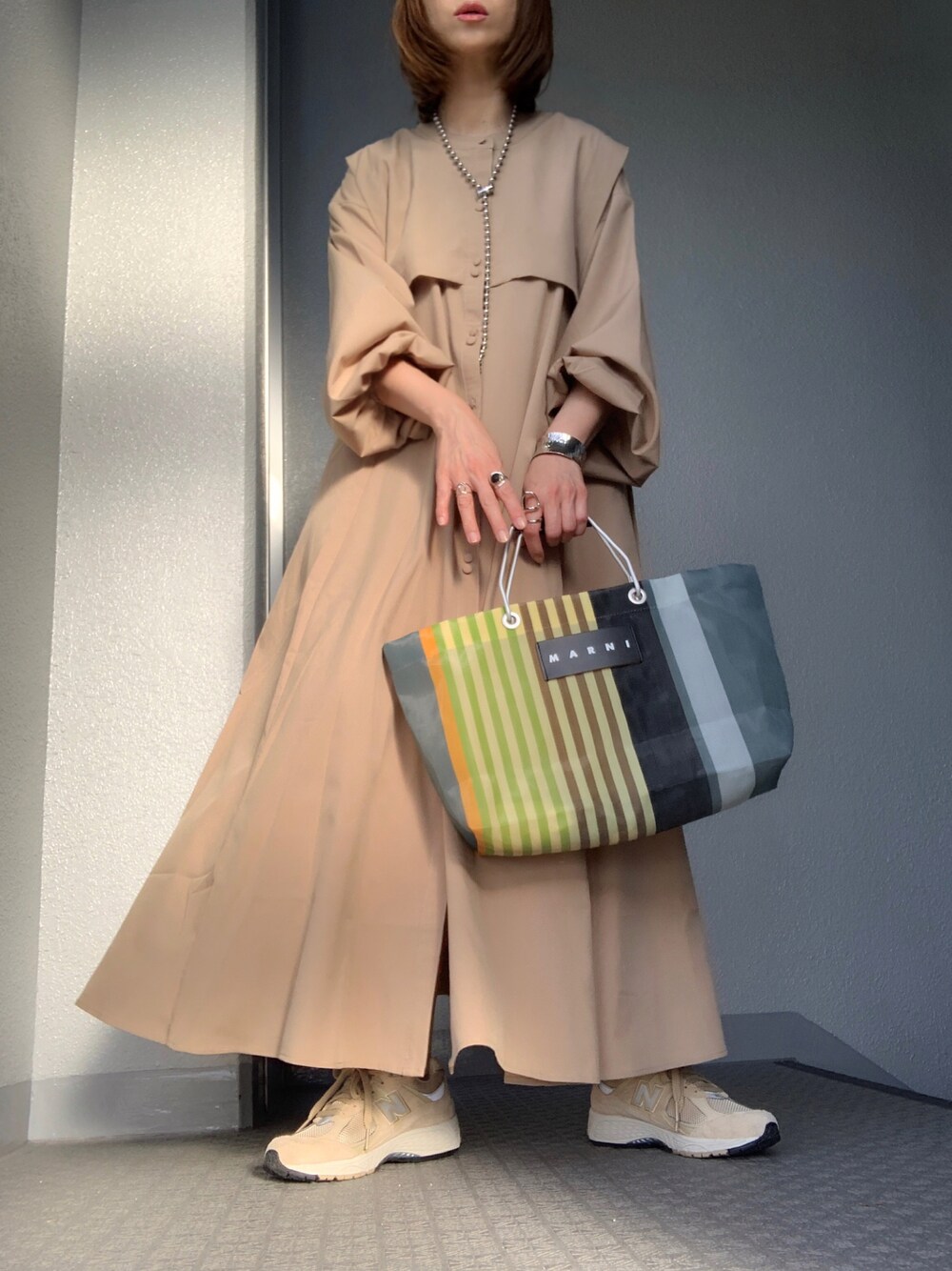cheryのシャツワンピース「【yun_wearコラボ】バンドカラーロングシャツワンピース」を使ったコーディネート