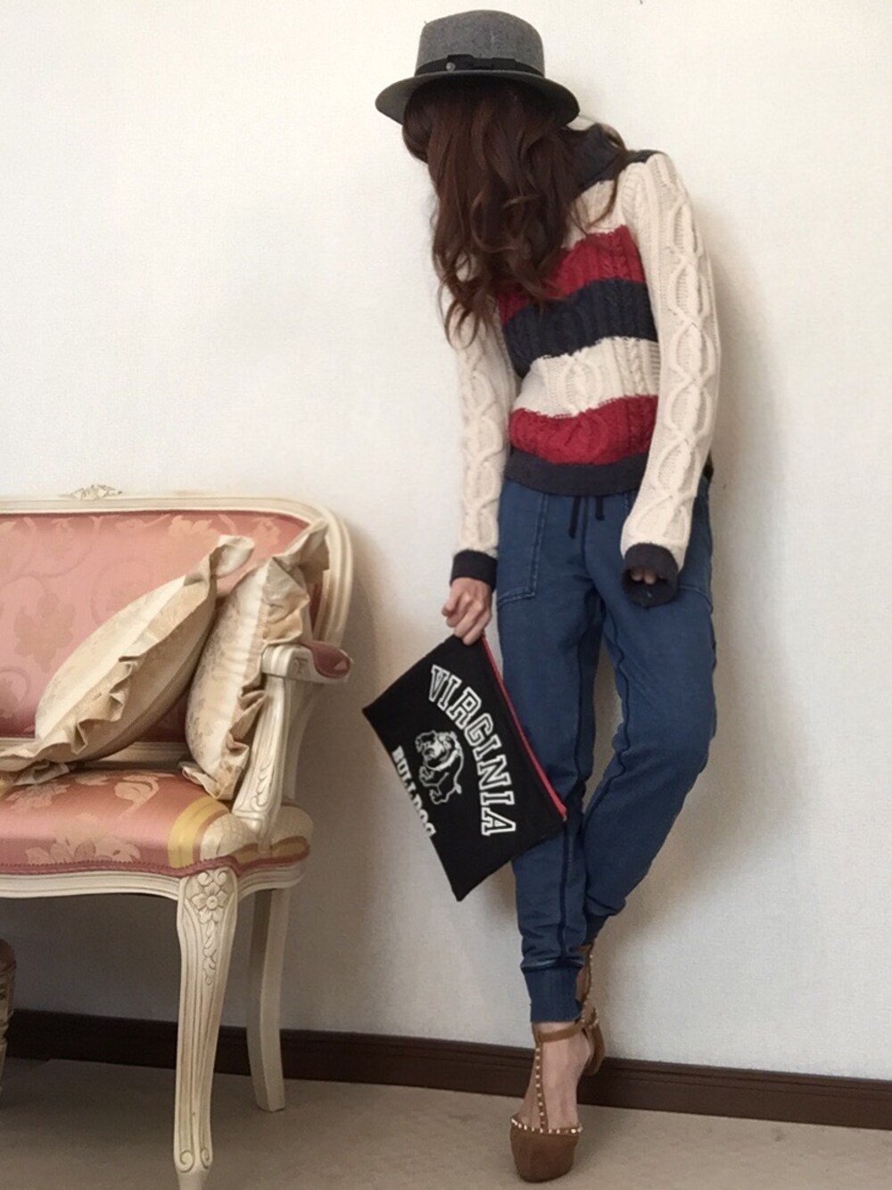 cheryのニット/セーター「ボーダーケーブルタートルニットP/O」を使ったコーディネート