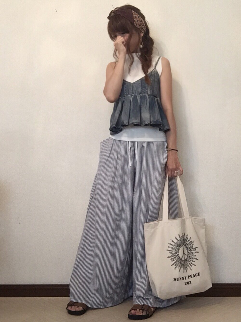 ずっとずっとお気に入りなペプラムキャミ❤️ 今年も着るよ❤️ ワイドなおパンツと合わせると脚長効果あるね(♡´艸`) Instagram:CHERY0131