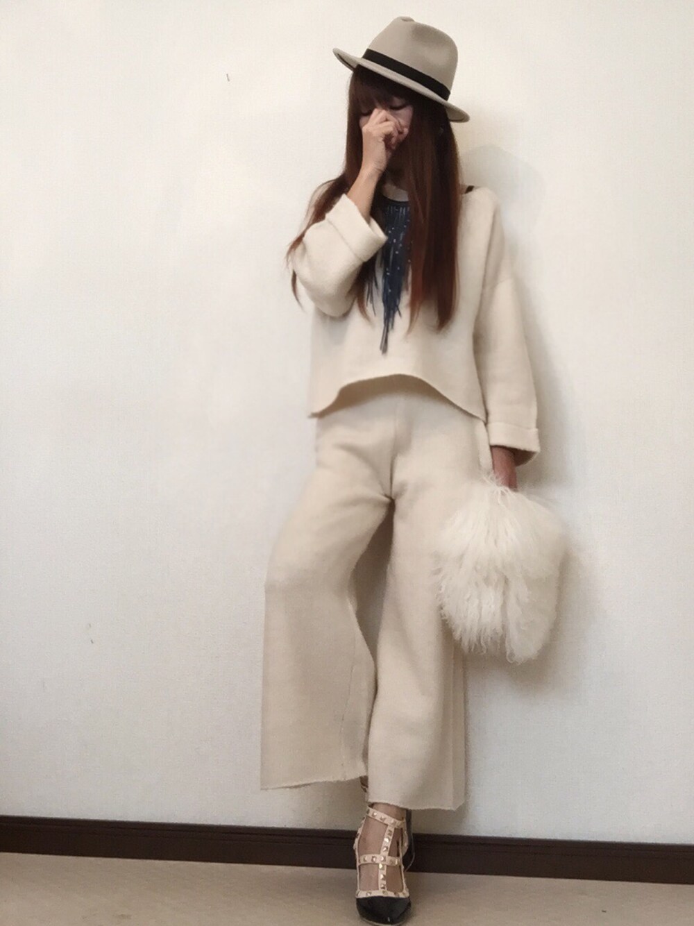 今日はホワイトコーデ(*´ェ`*)💕 ニットのセットアップでふわっふわ✩°。⋆ Instagram:CHERY0131