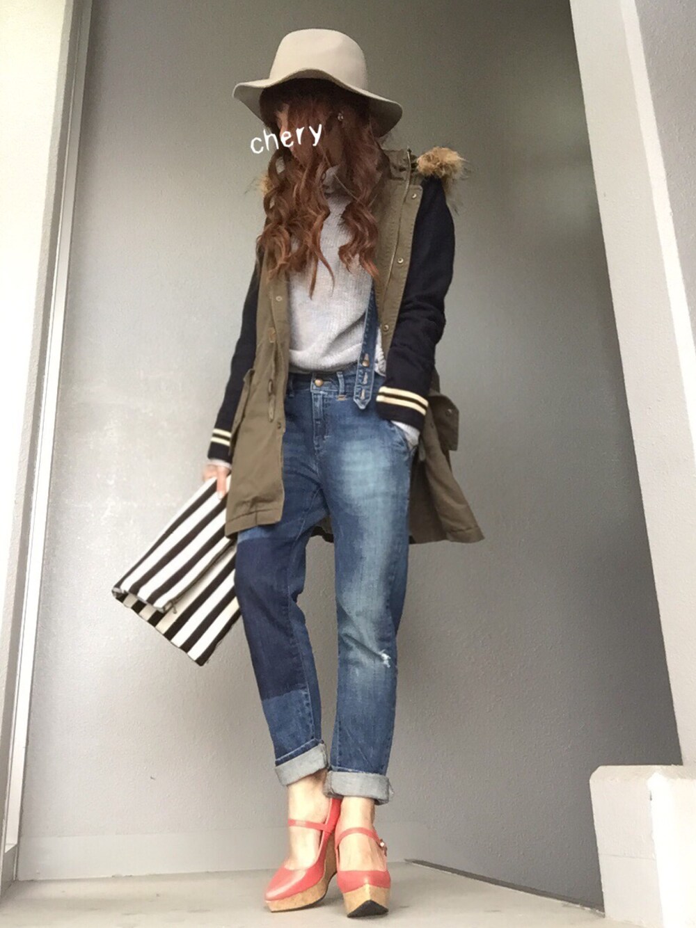 cheryのハット「ベーシックツバヒロナカオレHAT/AE Basic ツバヒロナカオレHAT」を使ったコーディネート