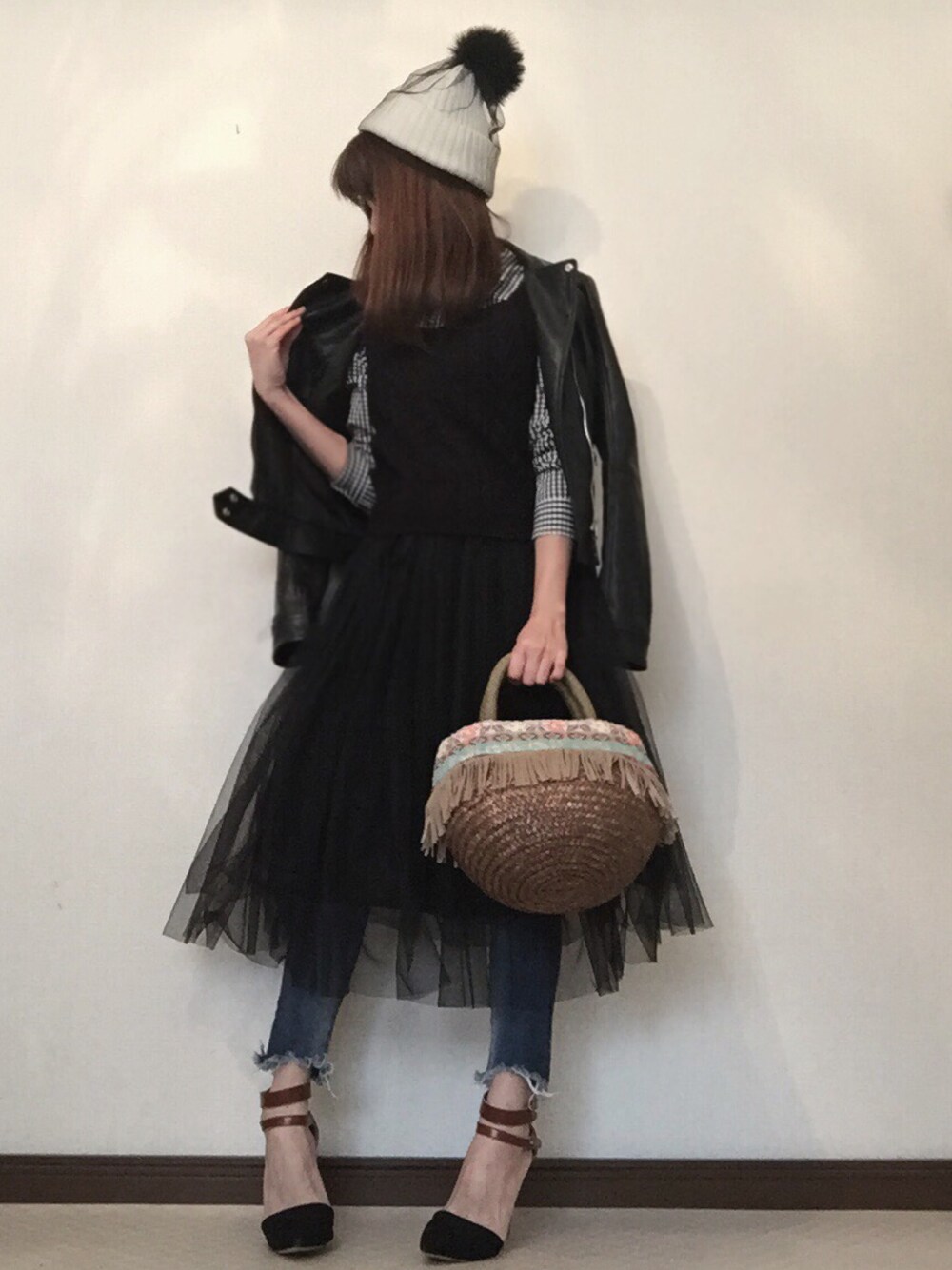 寒いけど、春意識のギンガムチェックシャツ着ました( ´͈ ᵕ `͈ )♡🌸🌸🌸 チュールにデニムのレイヤードスタイル•*¨*•.¸¸♪ Instagram:CHERY0131