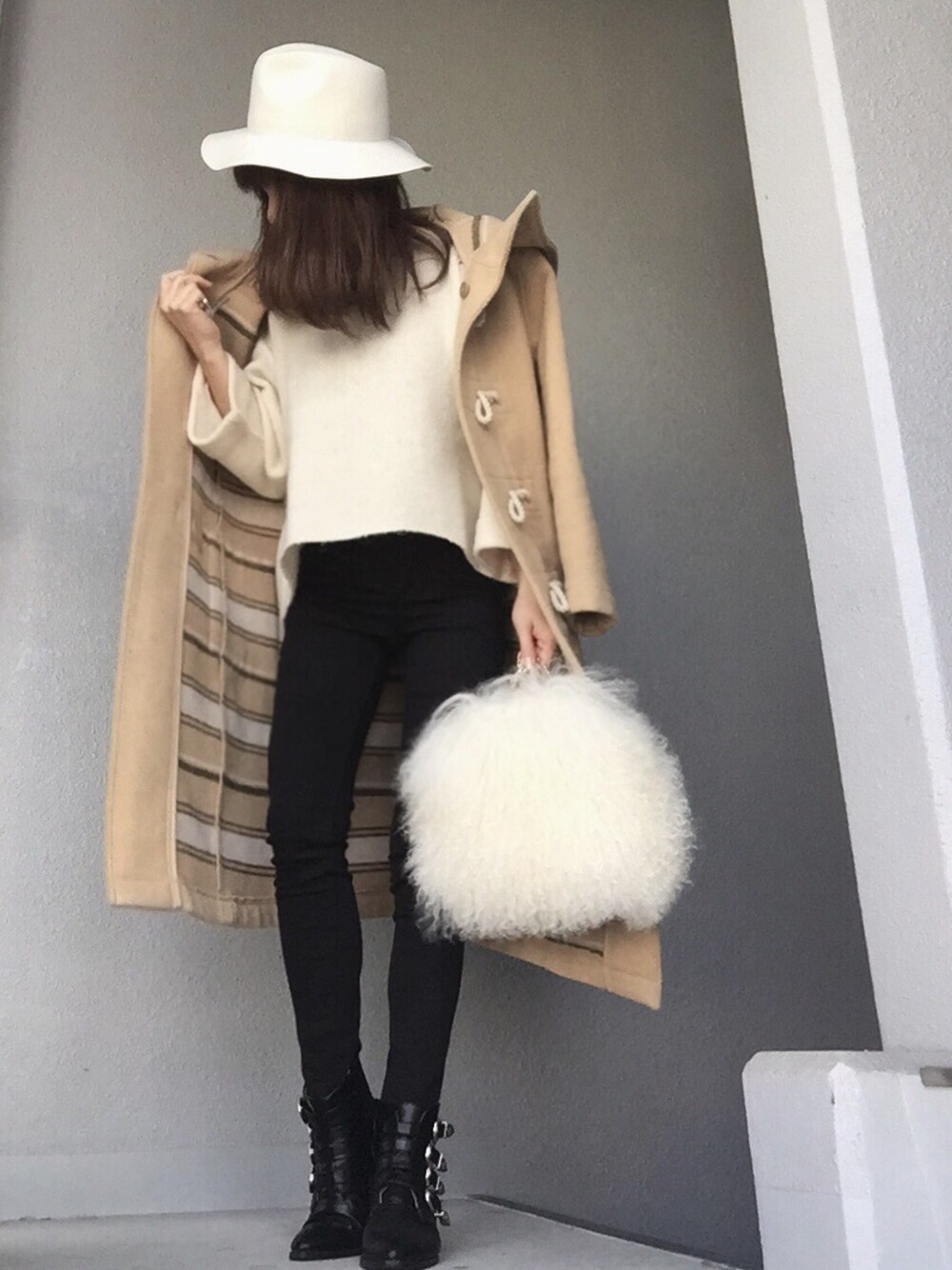 シンプルコーデ❅*॰ॱ 何でもないシンプルな感じも、お気に入りのふわふわニットにふわふわのバッグで少しオメカシ✨ Instagram:CHERY0131