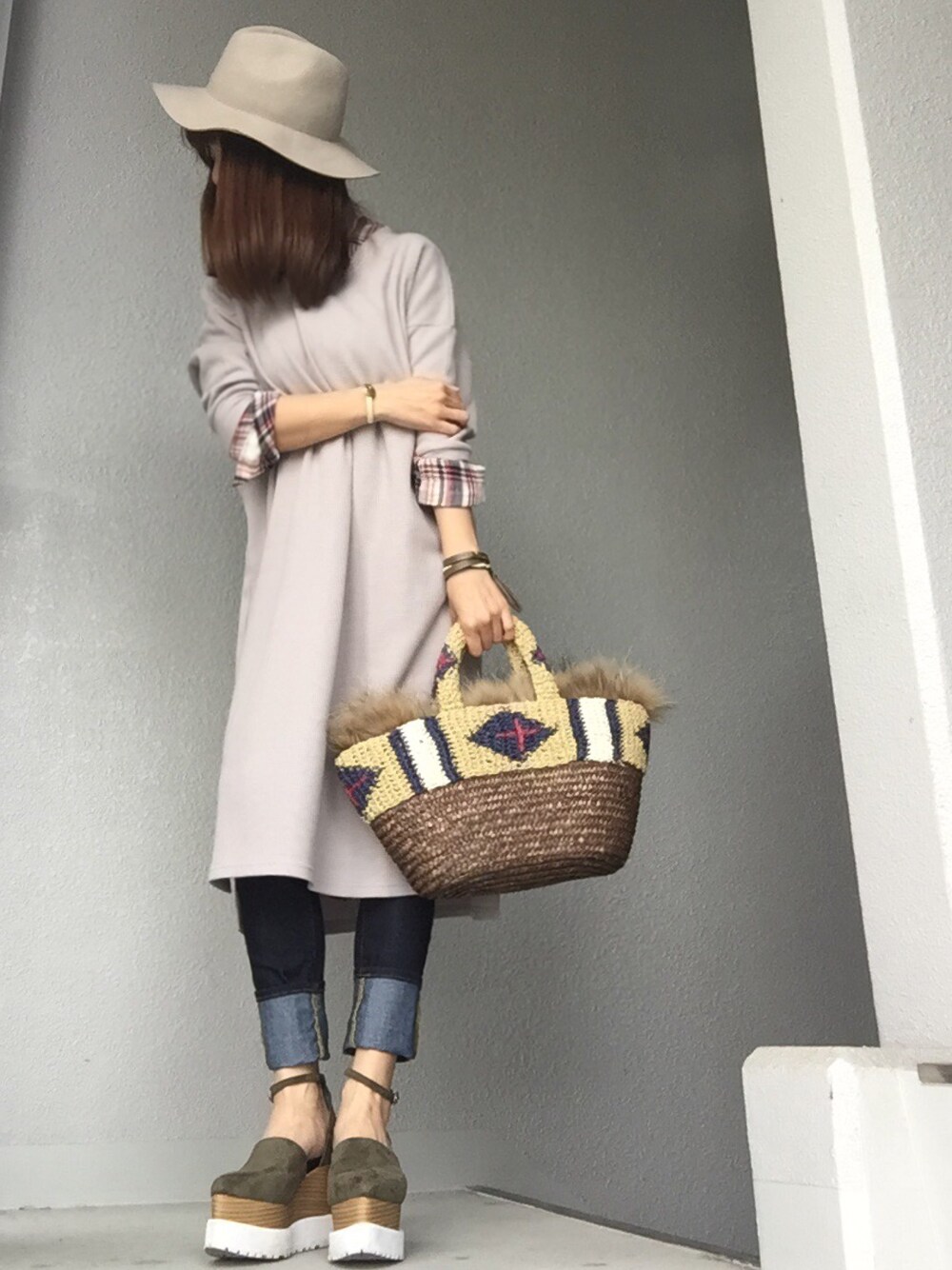 cheryのハット「ベーシックツバヒロナカオレHAT/AE Basic ツバヒロナカオレHAT」を使ったコーディネート