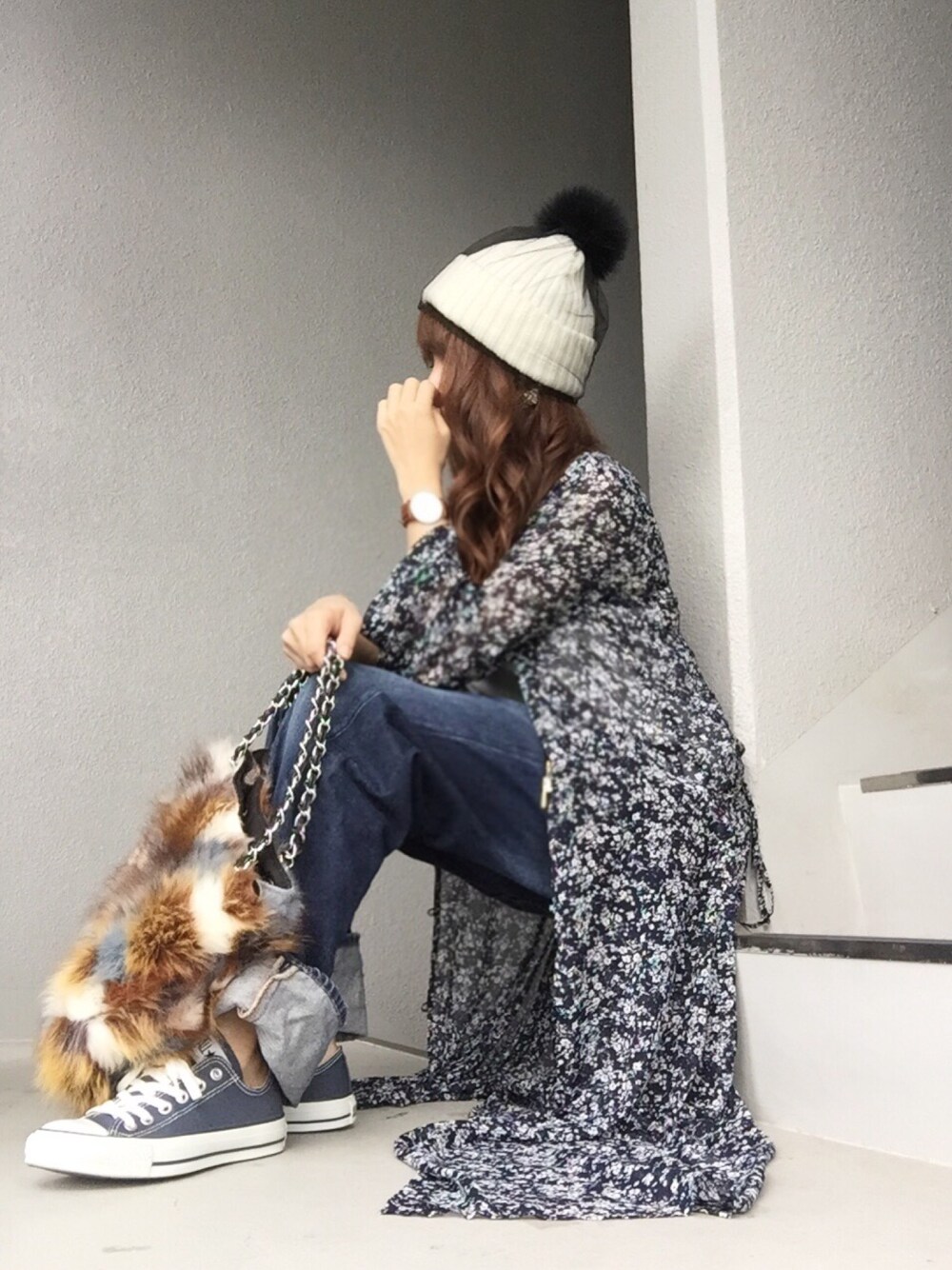 cheryのニットキャップ/ビーニー「チュールモチーフファーニット帽」を使ったコーディネート