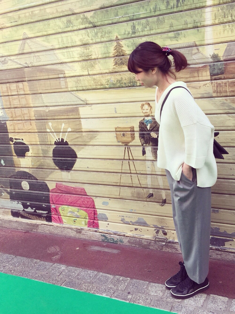 はなこのニット/セーター「ウール畦編みVネックプルオーバー」を使ったコーディネート