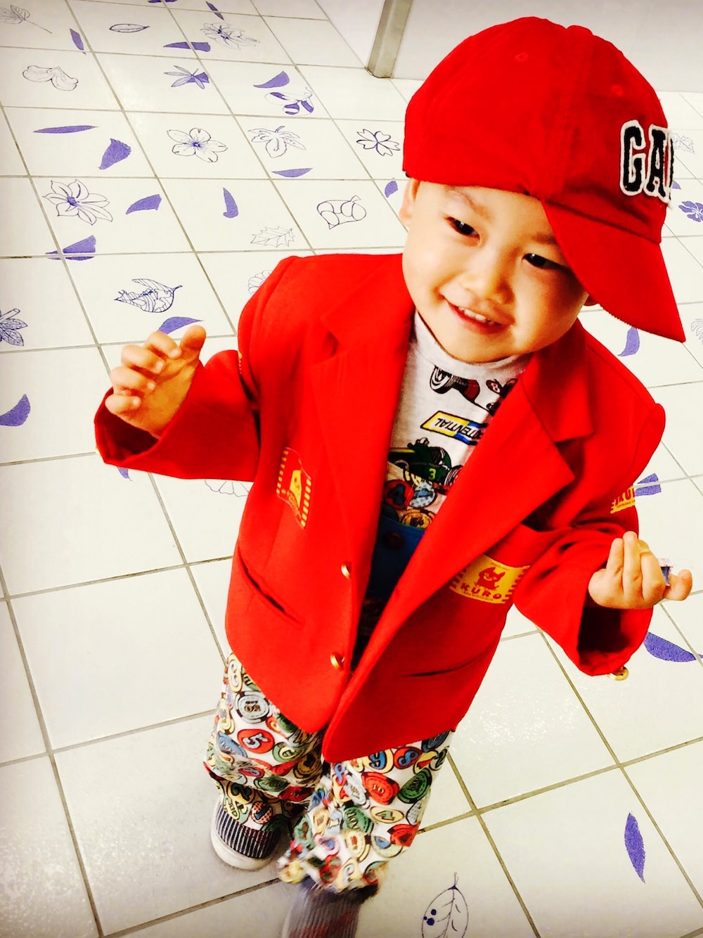 博多の電車がたくさん見えるカフェでクロちゃんジャケットを借りてパシャり⑅◡̈* 電車ずくしの1日でした!