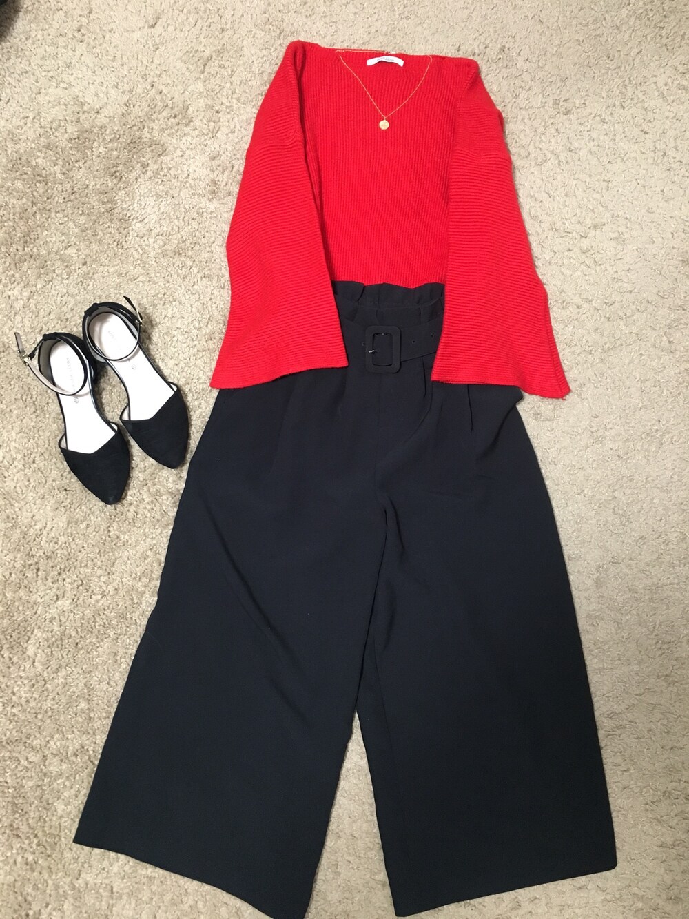 真っ赤なニット 買ってみたけど似合ってるのかなー。 主役ニットには他のアイテムの色を統一したくなる派