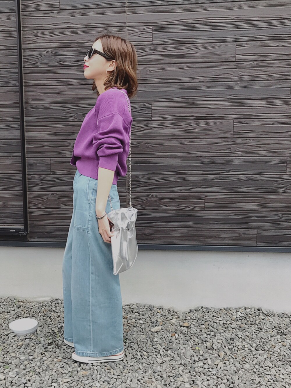 綺麗なパープルカーディガン〃ω〃)♡ お気に入りです* 買ったばっかりのジーナのベーカーデニムパンツと合わせました◎! 足長効果抜群╰(*´︶`*)╯♡ 梅雨に綺麗な色着るだけで 気分明るくなる単純なわたしですよ(〃ω〃) いつもご覧くださりありがとうございます**