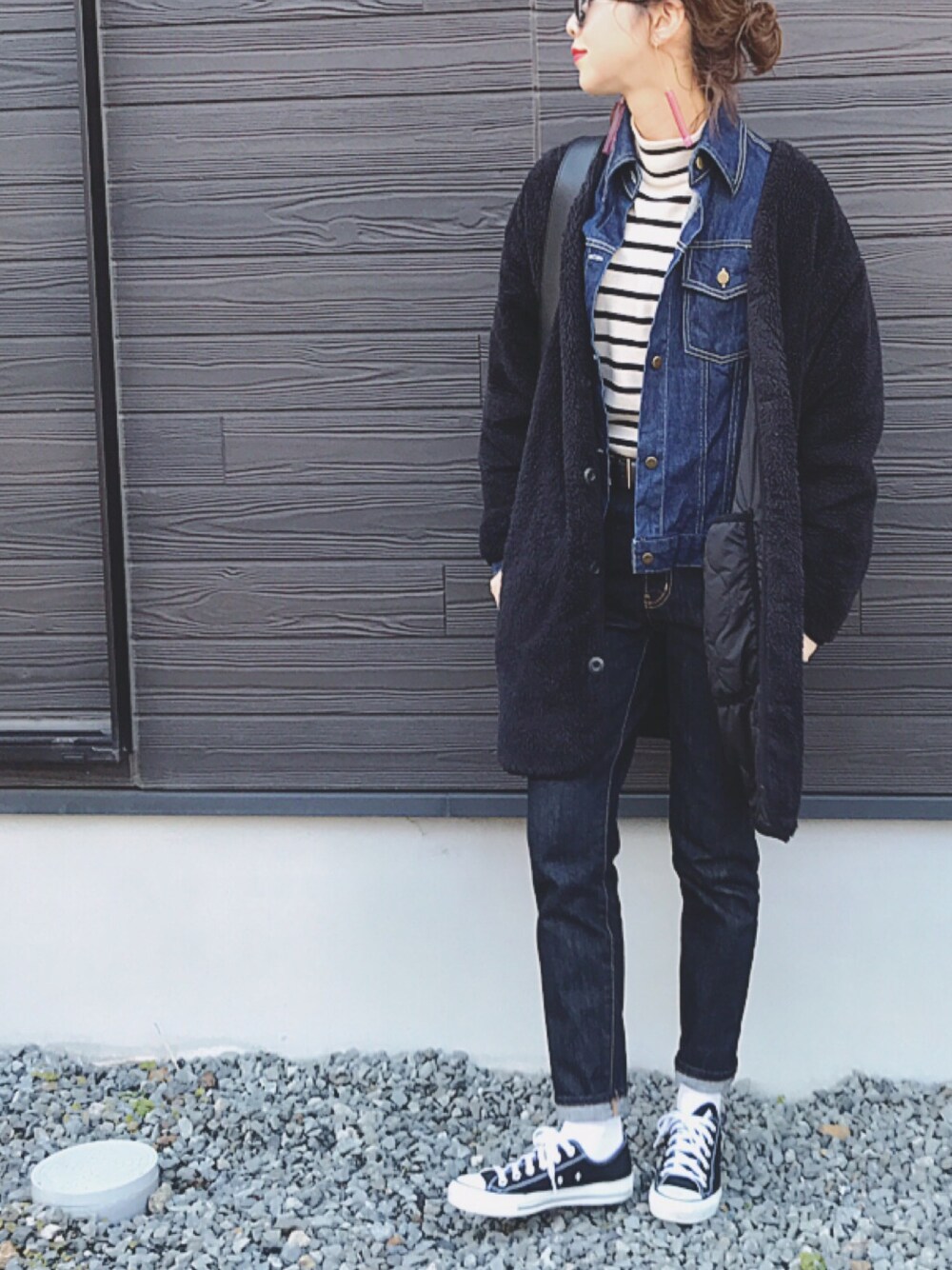 デニム×デニム♡! GUのモコモコアウター ほんと優秀❣️ いつもイイねありがとうございます❁
