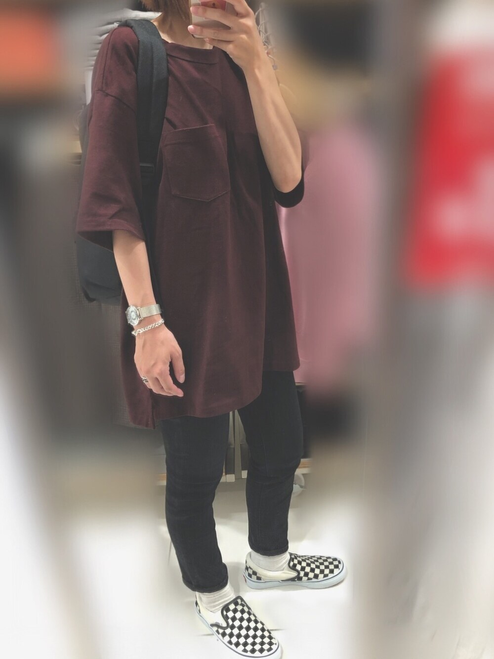 GUのメンズTは、 UNIQLOのメンズTより襟が詰まってて 好きなシルエットです。 襟が広いと、メンズTはどうしても 伸びたTシャツ着てるみたいになってしまって… なので、 UNIQLOのTシャツは、旦那の物となりました。
