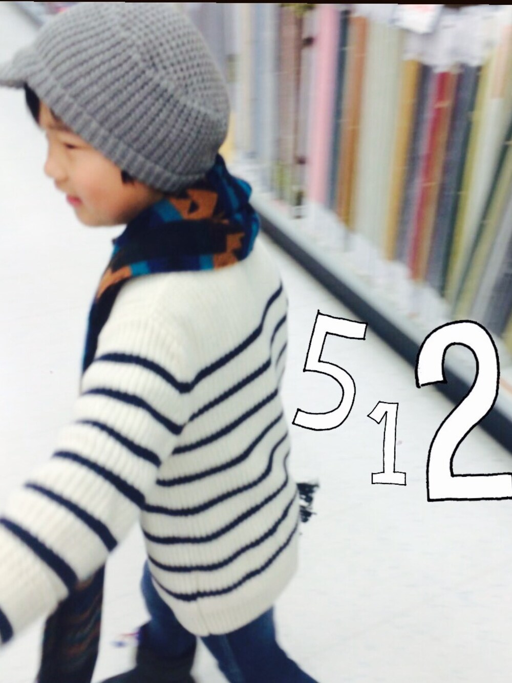 今日はニットも帽子も大きめサイズ。 中にシャツ着せてカジュアルに。 大人っぽくマフラーを首にかけただけ。 1番のポイントは… 北海道はまだまだ冬で寒いけど、 息子は汗かきなのでアウターなしのところ。 正解♡