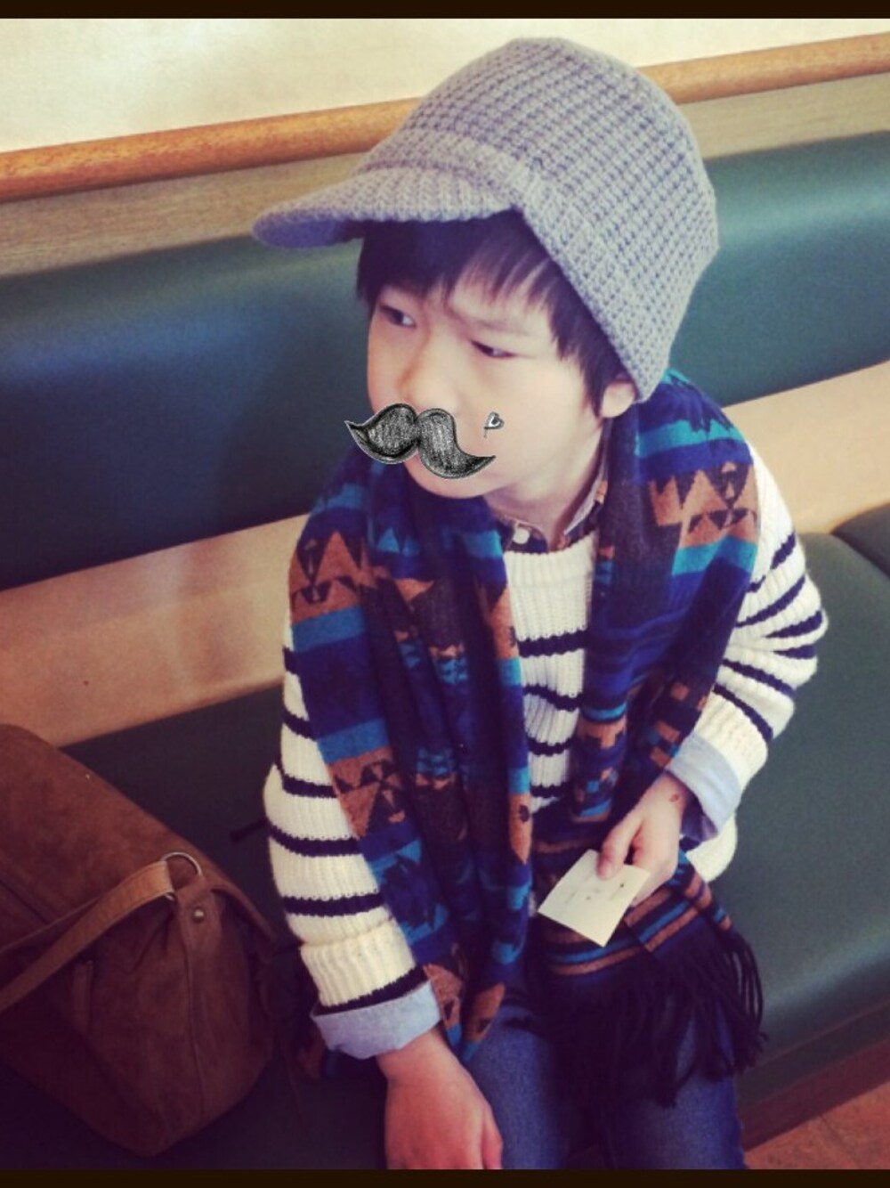 大人っぽく。 ちょっと春っぽく。 中にシャツ着せて腕クルクルしてみたり。 ニットも帽子もダブルオーバーサイズで。 眠くて赤ちゃんみたいな口になってます。 これでもあと1ヶ月で小学生です。 まだまだ甘えん坊の長男です。♡。