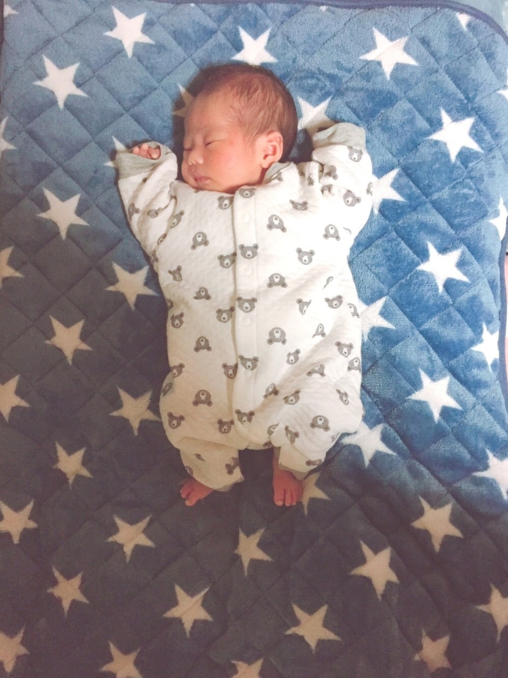 生後25日の息子くんコーデ。 お気に入りのユニクロ クマさんロンパース60センチ🐻❤️ ブカブカ具合がなんとも言えない(*´Д`*)