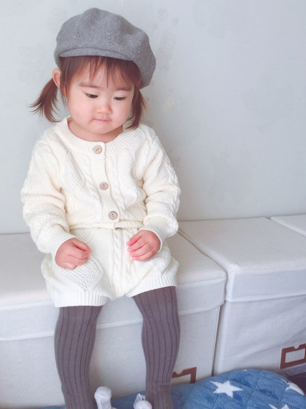 いつもいいね、コメント、お気に入り、フォローありがとうございます❤️ どれもとても嬉しいです❤️ 1歳9ヶ月娘ちゃんのコーデ記録です。 ☆バースデーのベレー帽48センチ ☆韓国子供服ニットのセットアップ80センチ セットアップは友達の子が着てるのを見てにこちゃんにも即買い🤣👍 80パツパツの時もあるけどこれはいけた❤️ 来年はせなくんに着せよう❤️❤️ さて今日は何しよう??