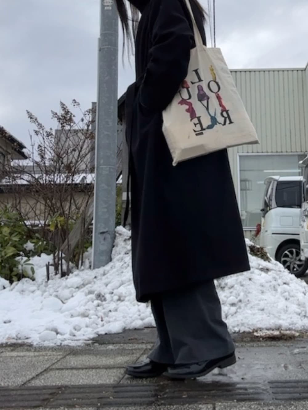ロングコートで綺麗めコーデ◎ パリのルーヴル美術館で購入したトートバッグお気に入りです🇫🇷🎨 パリジェンヌを意識してみました😊 Instagram···▸c_heer.10