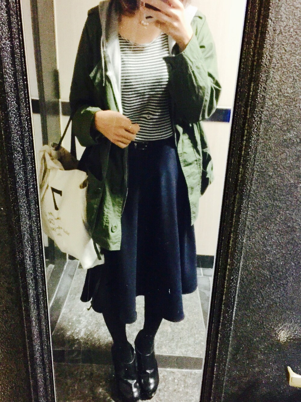 ◯どこかのワゴンSALEにて500円で購入したボーダーの薄手ロンT ◯しまむらにハリスツイード買いに行ったのに無くて代わりに買ってしまった1900円のミモレ丈スカート ◯UNIQLOのパーカー などなど、プチプラ過ぎるコーデでごめんなさい。
