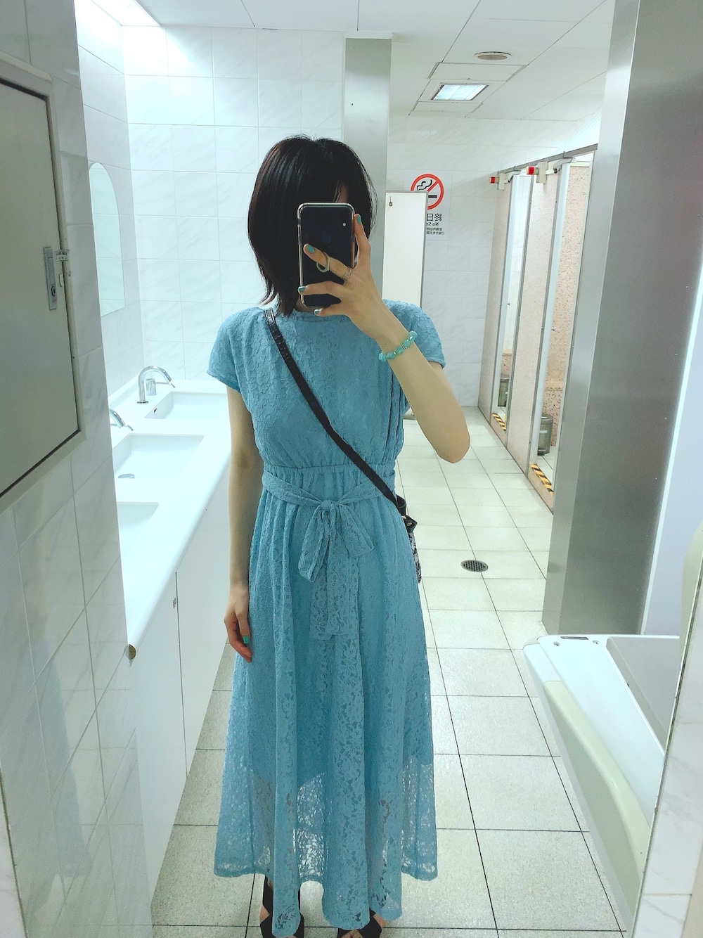ワンピースはブルー系です。(なぜかブルー系のカテゴリーになかったです…。 7月にきました。 こう言った服装はあまりしないので似合うか不安でしたが、着たらテンションあがりました!