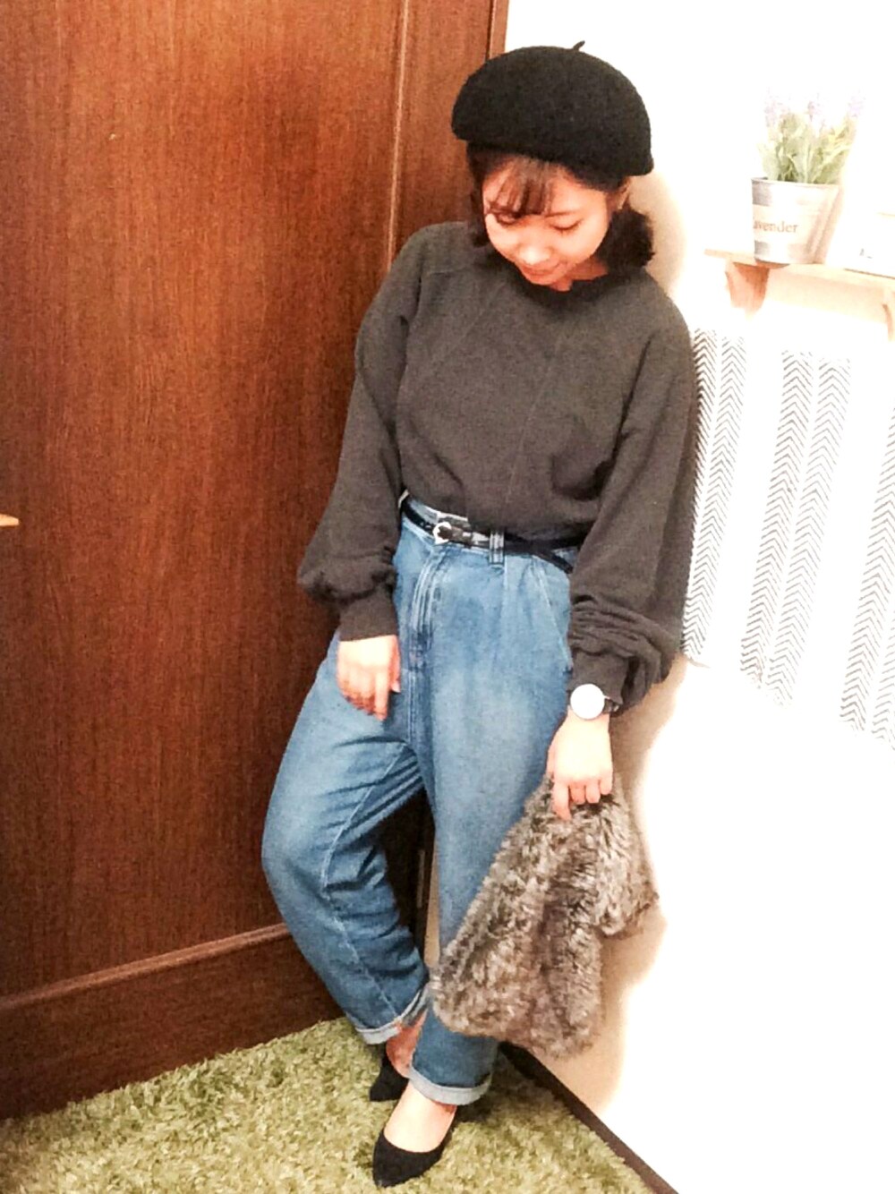 WEAR再開しようと思います◎ 袖のたるたる具合がgood. 最近はベレー帽とファークラッチがお気に入りです◁◁ それにしても画質が悪くて…。oO