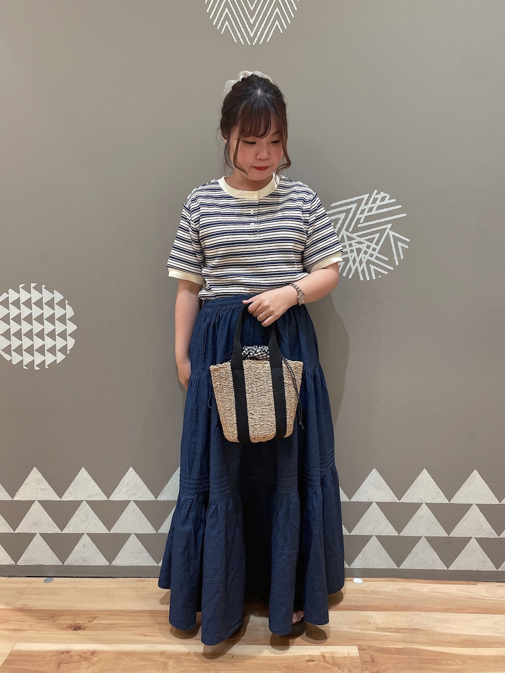 ちあきのTシャツ/カットソー「◎ワッフルボーダーヘンリーネックTシャツ」を使ったコーディネート