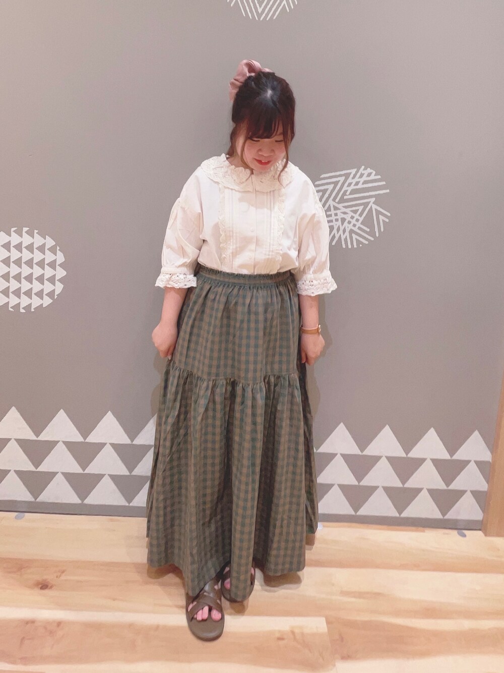 秋の新作コーデ🍁 スカートは丈感が低身長さんでも 着やすい丈感になっています✨✨ ブラウスは今から秋の初めまで 着回ししやすいデザインになっています😌