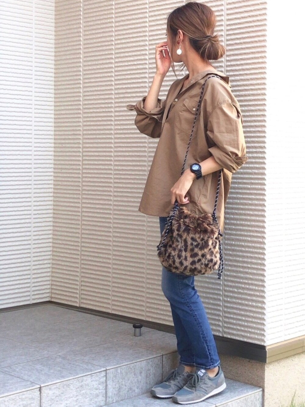 こんにちわ⭐️ 予約販売でポチってた レオパのショルダー🐆😍 届いた〜 かわいい〜 (〃ω〃) うしょしょしょ♡ ピースした写メ 壁と同化が激しかったので 小窓へ(о´∀`о)💦 見ていただきありがとうございます😊