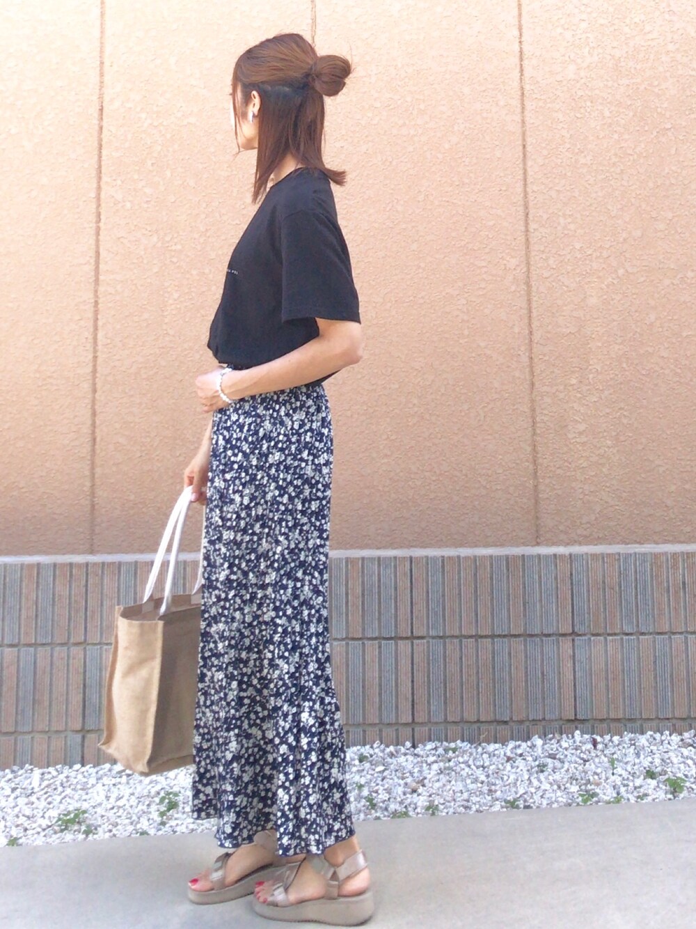黒のロゴTシャツと 小花柄のサテンプリーツスカート🦉 サテンとかプリーツとか花柄とか… なかなか抵抗ありましたが 手出しちゃいました(о´∀`о) GUのスポサン めっちゃ使える(´⊙ω⊙`)❗️ あしたから また頑張ろう✊ 良い日曜日をー🤗