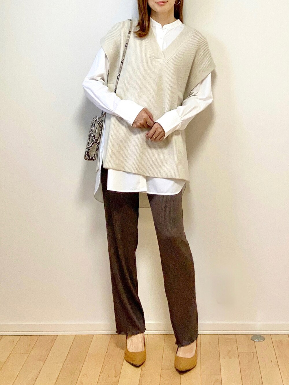ユニクロのスタンドカラーシャツと GUのリブストレートパンツ どちらもMサイズ⭐️ shirts▶️ユニクロ vest▶️GU pants▶️GU shoes▶️GU bag▶️GU