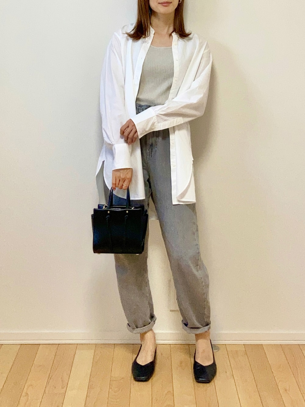 ユニクロのスタンドカラーシャツ 着回し⭐️ 羽織れるしトップスにしても可愛いし レイヤードできるし スタンドカラー優秀☺️ インナー▶️GU シャツ▶️ユニクロ デニム▶️ZARA バレエシューズ▶️ZARA バッグ▶️ZARA
