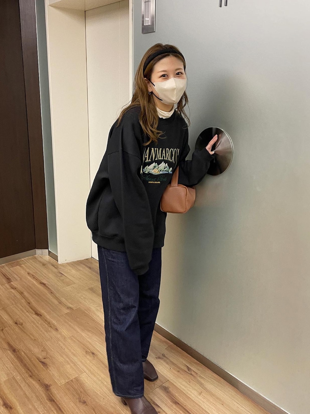akari(DISCOAT)のスウェット「【WEB限定】刺繍ロゴビッグスウェット」を使ったコーディネート