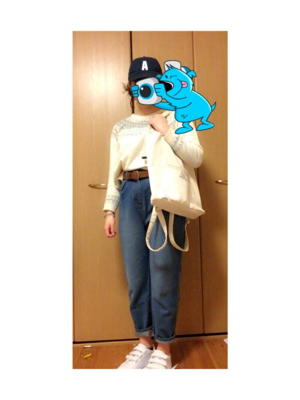 もふもふちゃんのニット/セーター「ミドルゲージジャガードニットプルオーバー」を使ったコーディネート