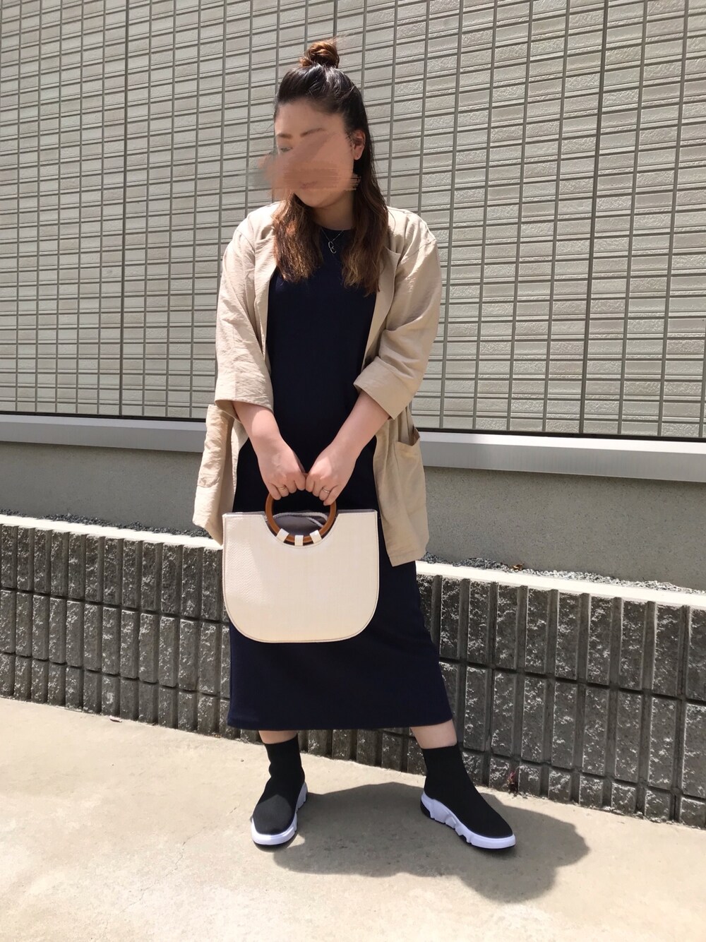 いつも、♡,お気に入り,フォローありがとうございます♡♡ シンプルなワンピースにジャケットで大人っぽくして、足元はソックスシューズでカジュアルにしてみました( ¨̮ ) シューズは、とてもオシャレなwearistaのAIさんのブランド、LVEU.のものでとても履きやすく形も可愛いです♡♡