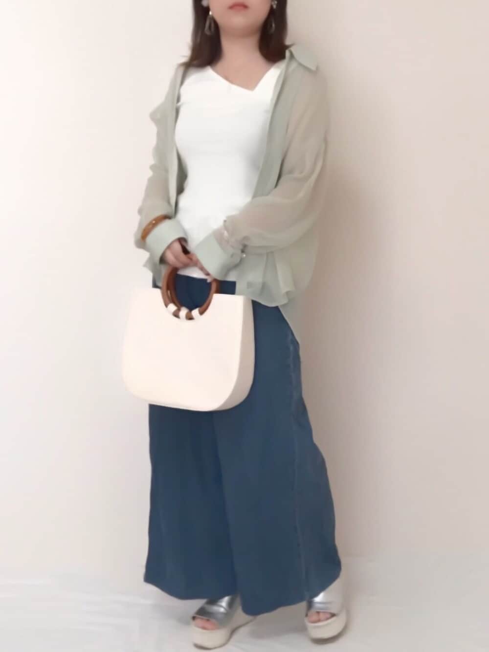 いつも、♡,お気に入り,フォローありがとうございます( *´꒳`*)♡ ✽+†+✽――✽+†+✽――✽+†+✽―― グリーンのシアーシャツの着回しです(^^) ワイドデニムと合わせたら少し夏っぽくなりました☺︎︎︎︎ 夏先取りコーデですね(*≧艸≦) ✽+†+✽――✽+†+✽――✽+†+✽―― Instagramやってます☺︎︎︎︎ ▷▶︎▷▶︎ maru_wear_ インスタではコメ欄開けてますので良かったら見に来てください♡♡