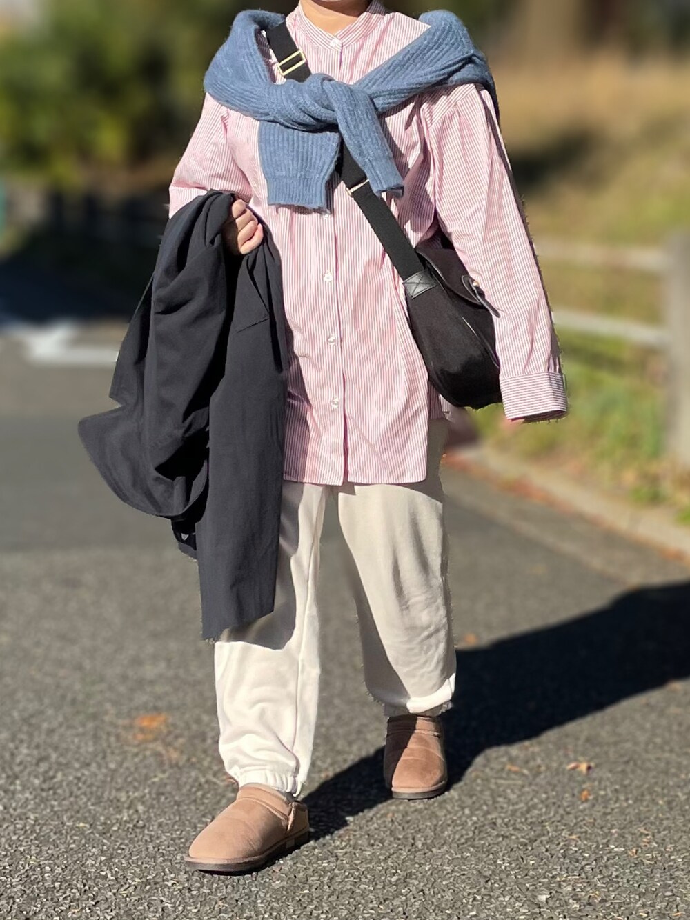 maru☺︎のシャツ/ブラウス「ストライプバンドカラーシャツ【ZOZOTOWN限定アイテム】」を使ったコーディネート