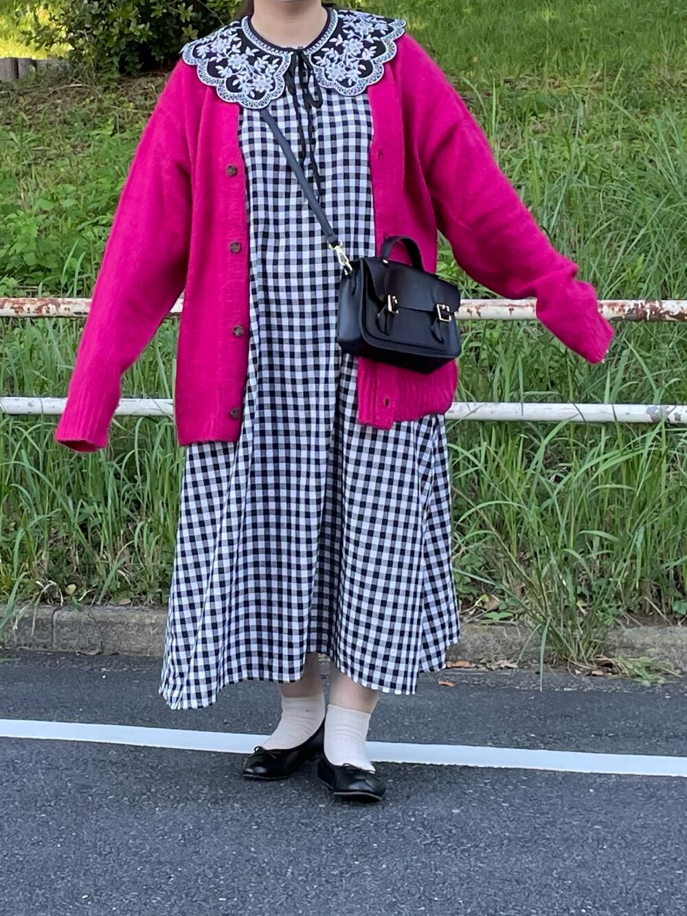 maru☺︎のワンピース「【ZOZO限定】サキシマamp「チェック柄ボリュームワンピース」」を使ったコーディネート
