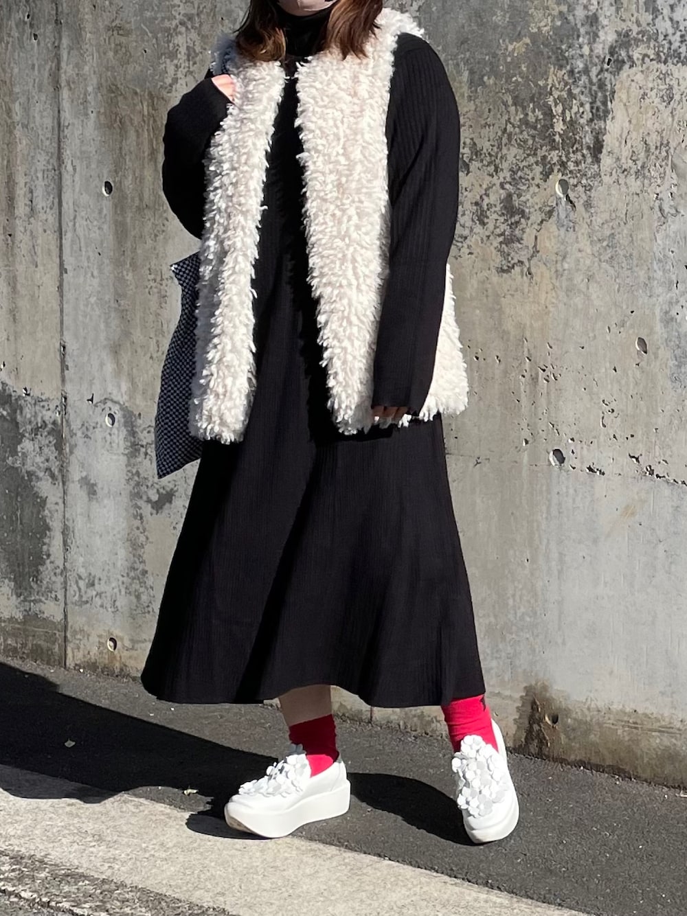 maru☺︎のベスト「カーリーファーベスト」を使ったコーディネート