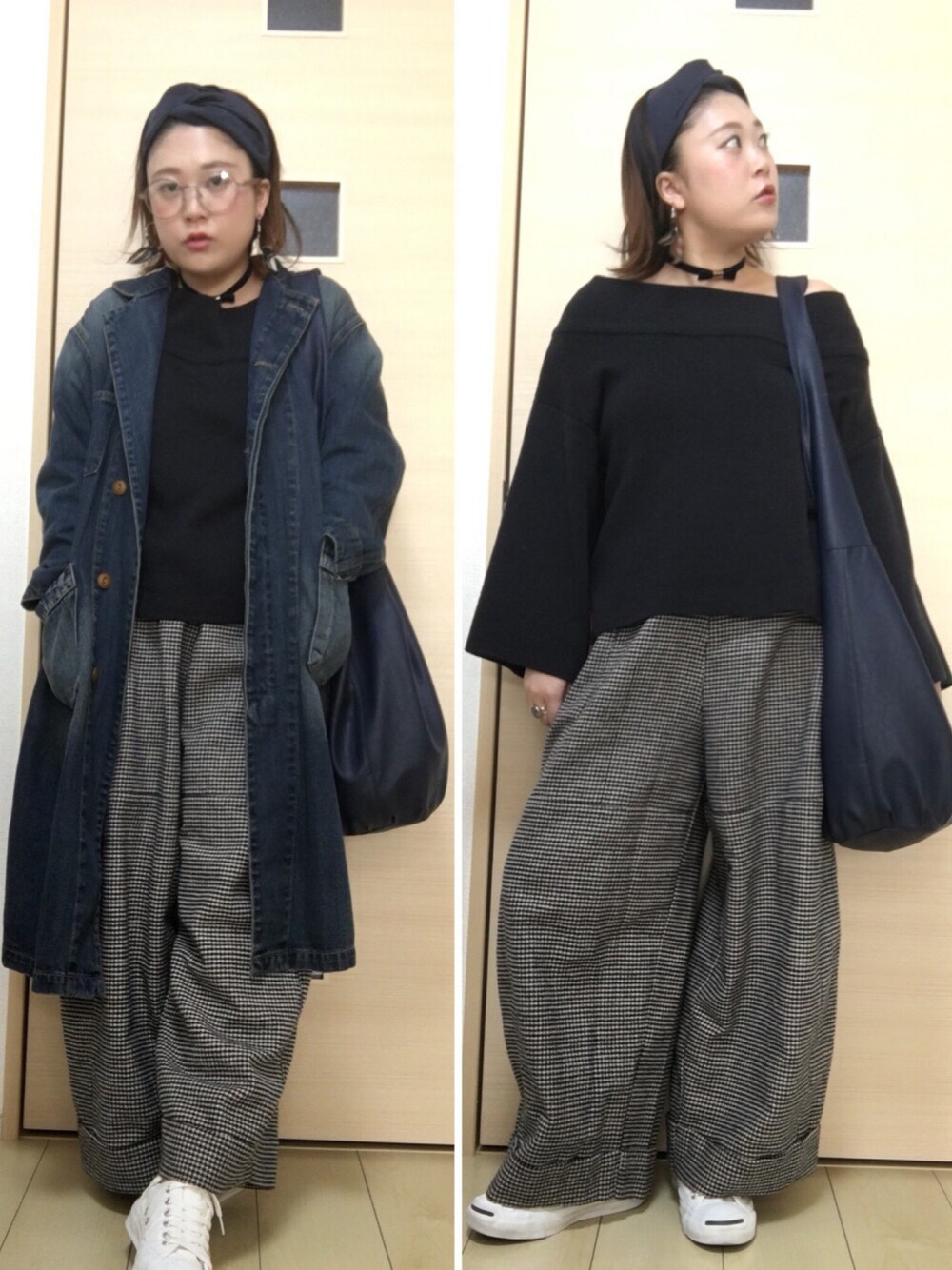 神フェスってまだ大丈夫ですか?! 被り物は、ヘアバンドで許して下さい(´-`).。oO このニットは2wayで、オフショルにも普通にも使えてとても使えます╰(*´︶`*)╯♡ 千鳥柄パンツは今年っぽい形で小さな私でも履ける丈だし履きやすくて毎日履きたいくらいです(*≧∀≦*) デニムのジャケットは韓国に行った時にセレクト ショップで半額になっていて、形がとてもオシャレで一目惚れして買いました♡ 大きめサイズが最高です♬