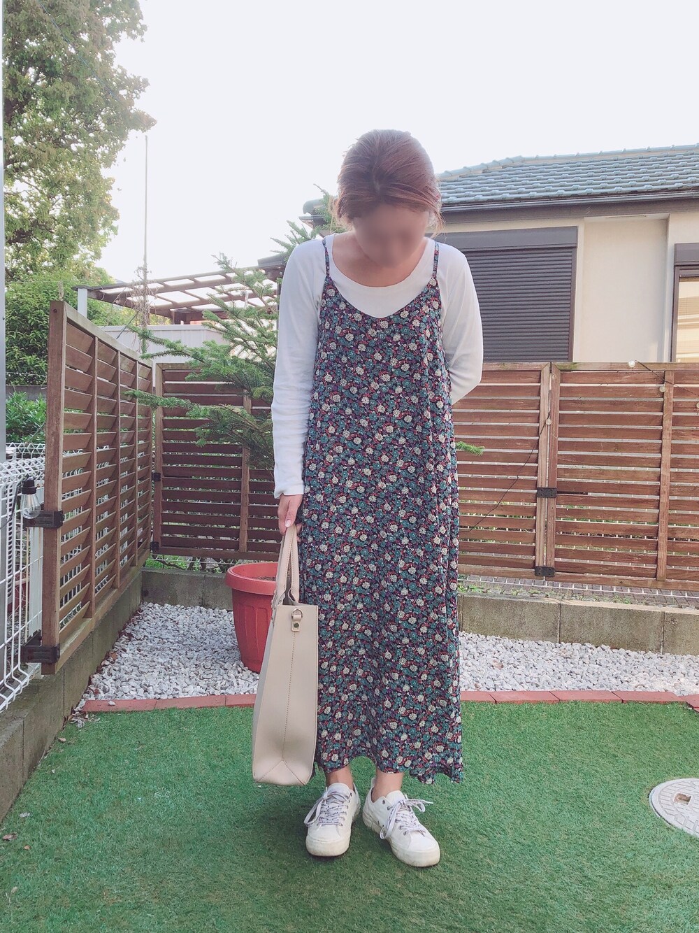豆つぶのワンピース「フラワーキャミワンピース」を使ったコーディネート