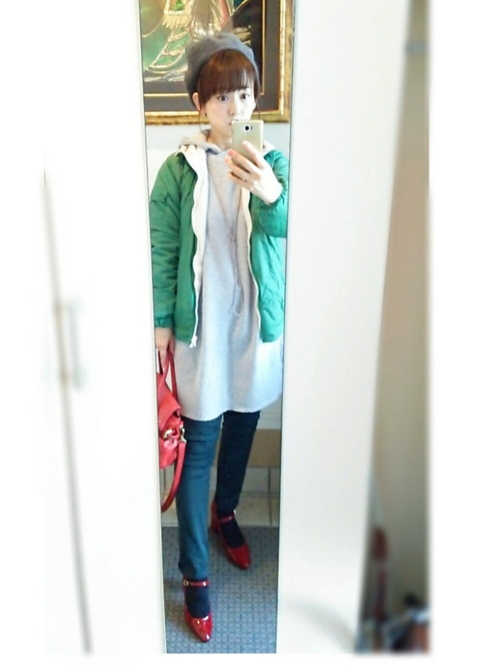 昨日のしましまコーデは、いっぱいの方が 見に来て下さって、ビックリでした。 ありがとうございます❗😭 ビックリして、今日は気が抜けた顔に なっております。ご了承下さいませ(笑) 最近、グリーンが気になってるので、 グリーンとホワイトのリバーシブル ブルゾンのグリーンを表にして 着てみました。😊 パンツの色もグリーンですが、 分かりにくいかな? ブルゾンの下は、GUのフード付きニットです。 楽チンコーデです。 皆さん素敵な時間を過ごせますように❤😆