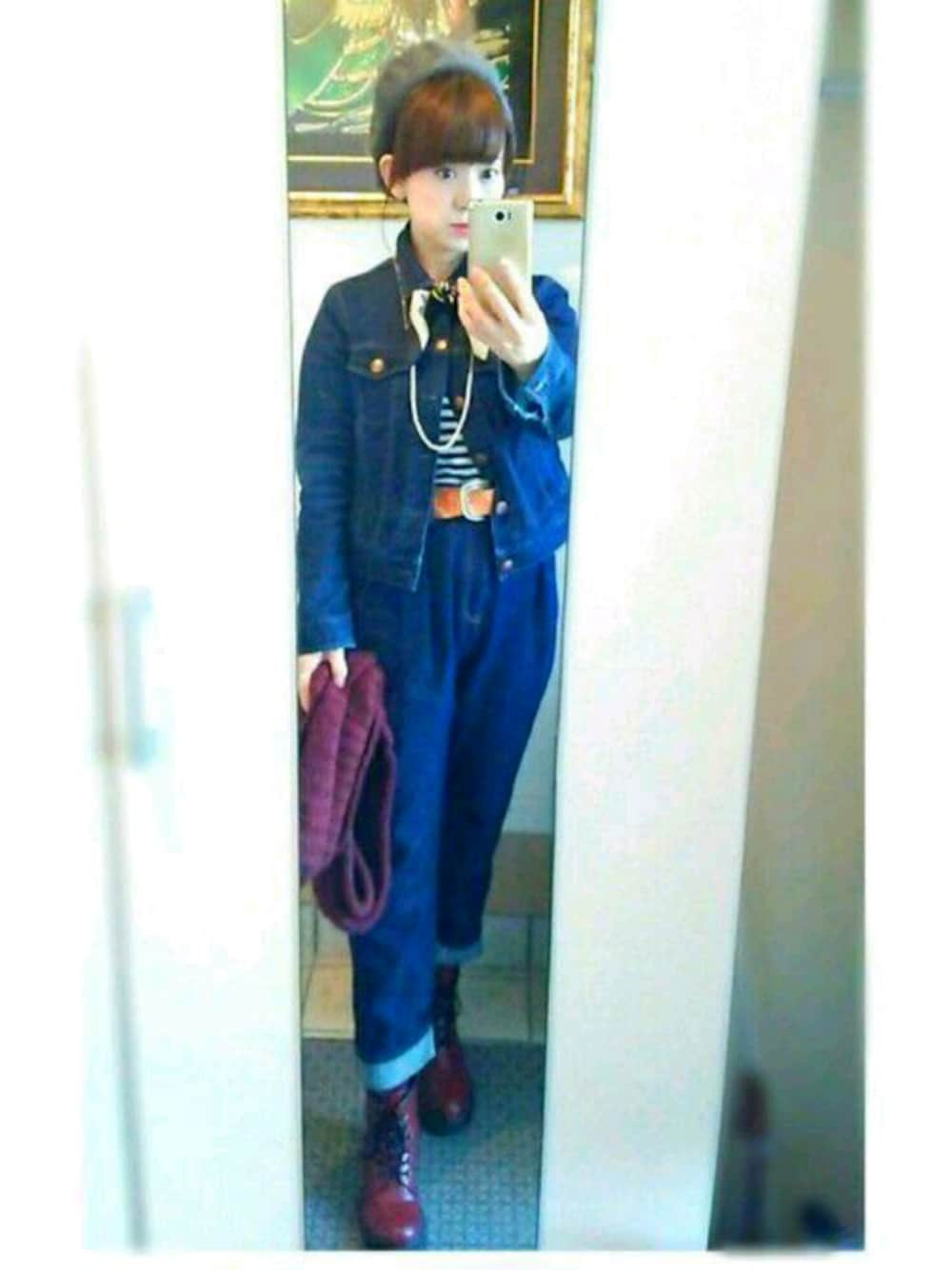 デニxデニコーデです😃💕 ジージャンは第二ボタンまで止めて スカーフ巻き🎵 あとは、開けっぱで(笑) マムジーンズ👖、2度目の登場です☆ ベルトをしないとかなり下がってきます。 後ろにゴムが入ってたらなぁ。。なんて。 今日は、寒いですが、ジージャンなんと 襟元を閉めるとかなり暖かい✨☀✨です。 ジージャン愛好家としては、 真夏以外は着たい❗(*´∀`) 寒い? いや、 大丈夫です☆ 中はユニクロさんの極暖ヒートテックを 着てますから🎵 引いたかな?(笑)(*≧∀≦*) 今日は、金曜日。 頑張って明日はお休みぃ~🌟 たくさんのいいね、save、フォローありがとうございます❗ ほんとに嬉しく感謝感激です☆ 今日も皆さんにとって 素敵な1日になりますように❤(*^^*)