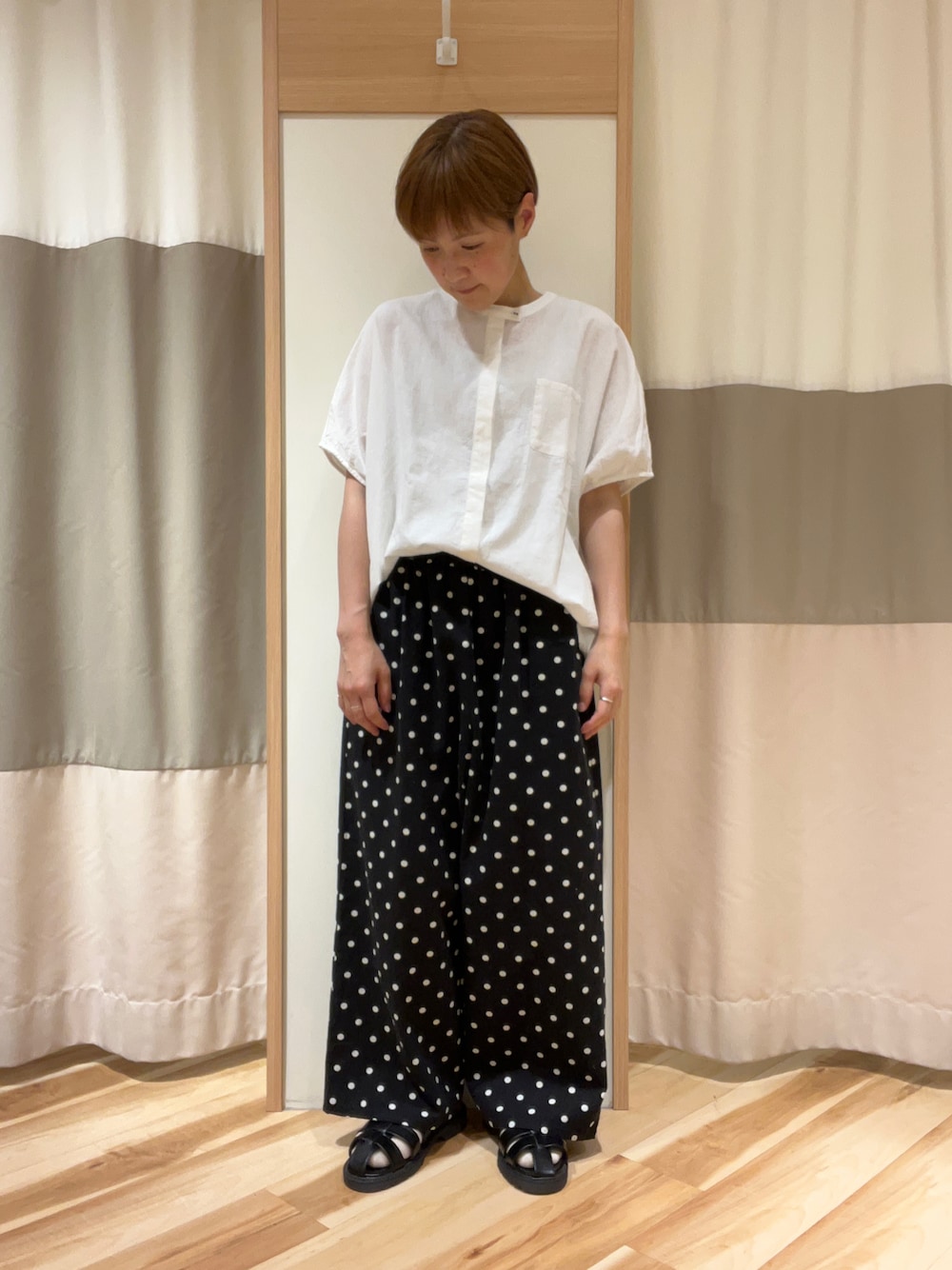 むっちゃんのシャツ/ブラウス「【クールコットン】柄アソート袖タッククルーネックブラウス」を使ったコーディネート