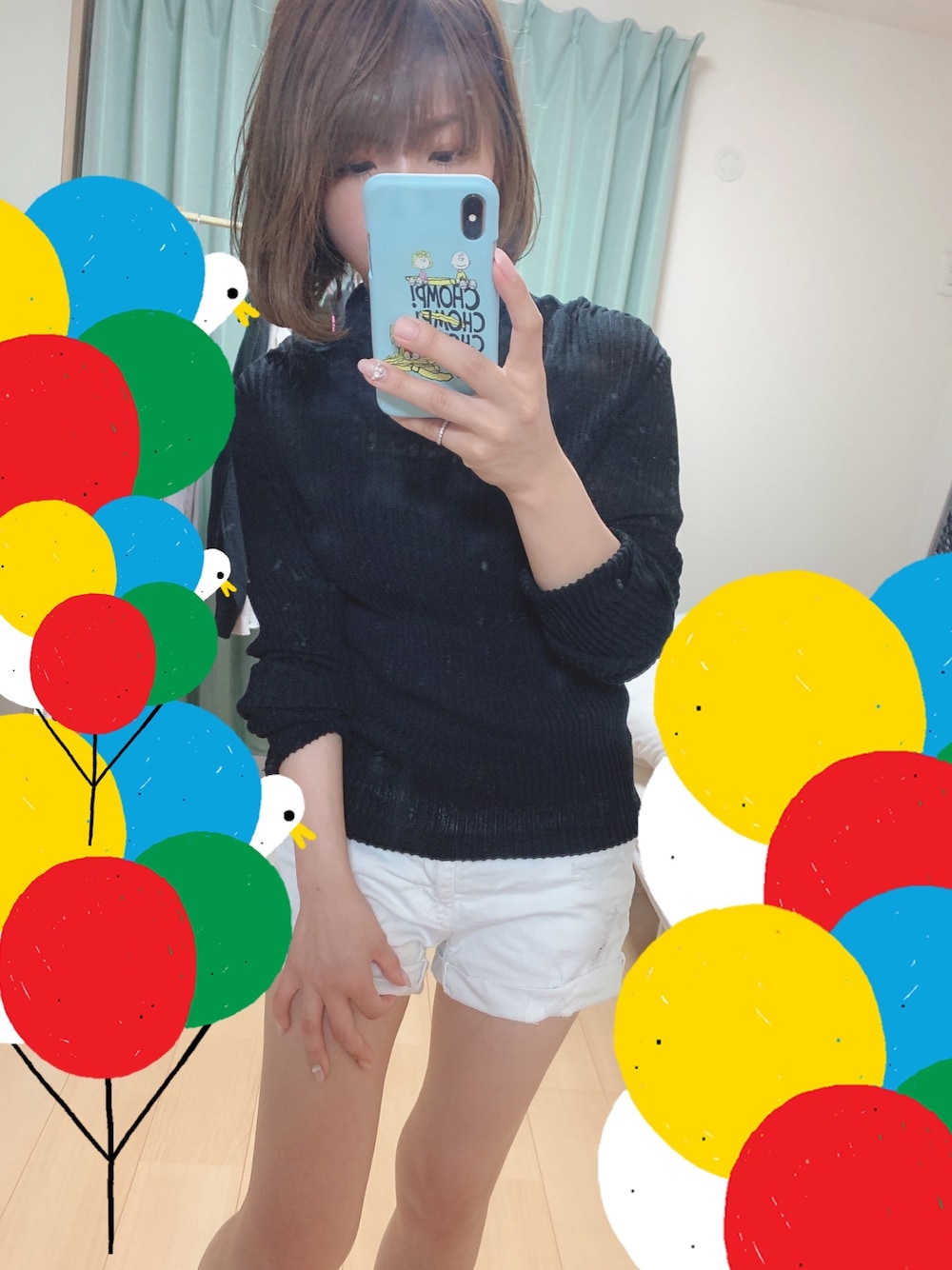 暑くなりましたので 既に短パン( ¯꒳¯ ) トップスはモコアズ\❤︎/ 長袖ですが透け感ありで キレイ✩*⋆