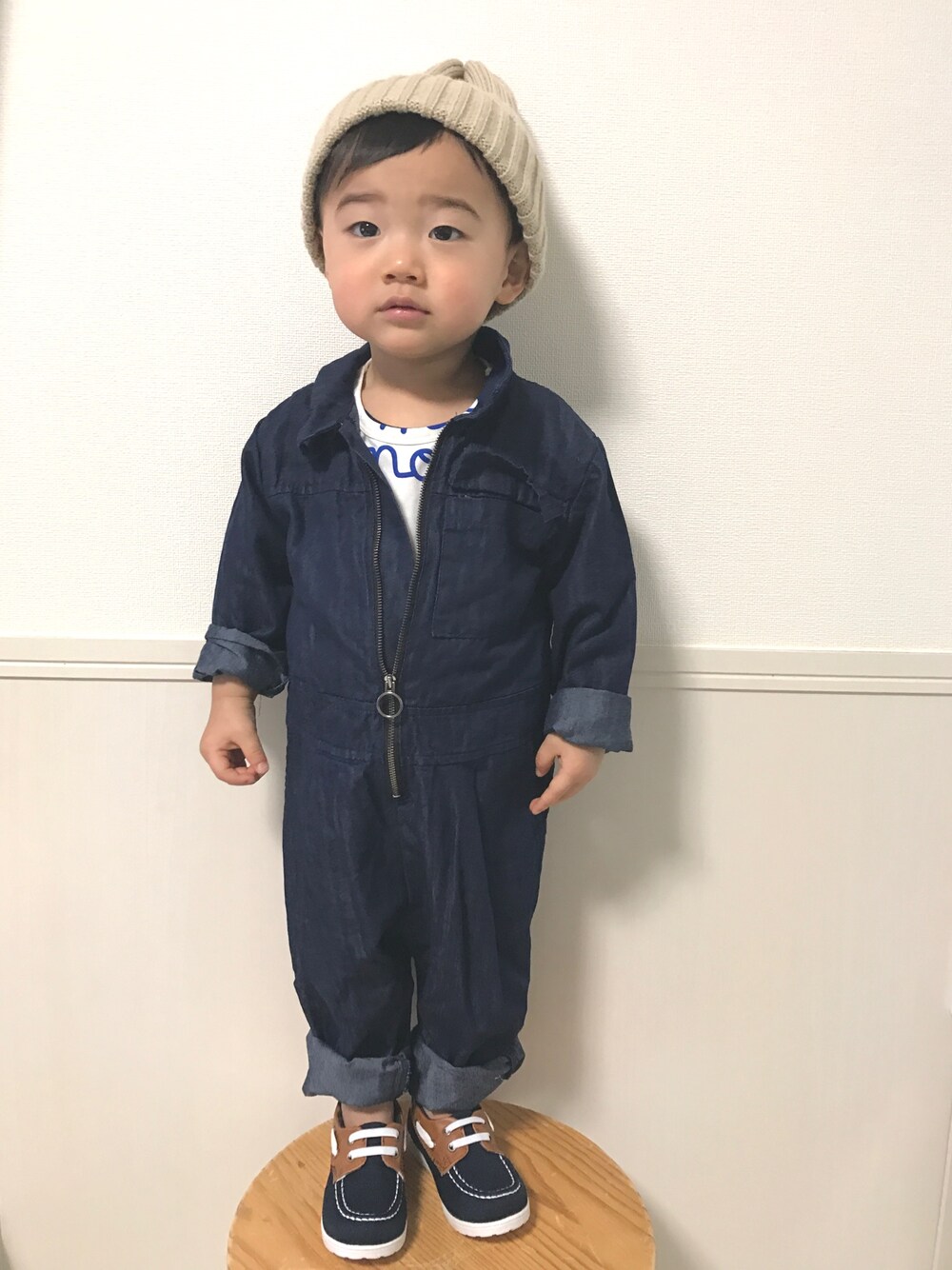 またつなぎw かわいいからいっかー♡ この帽子と靴合わせやすくていい❁